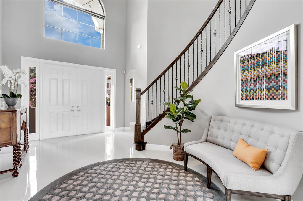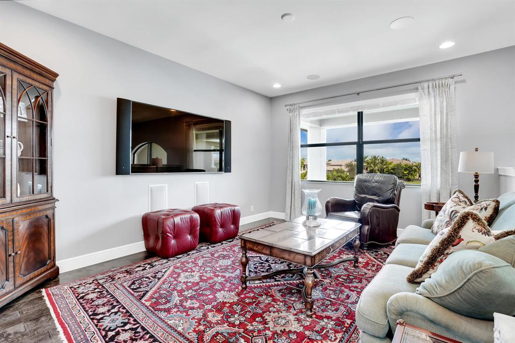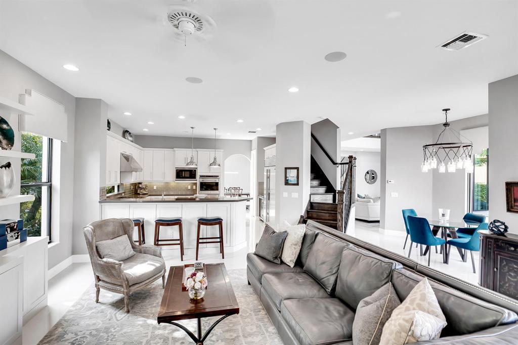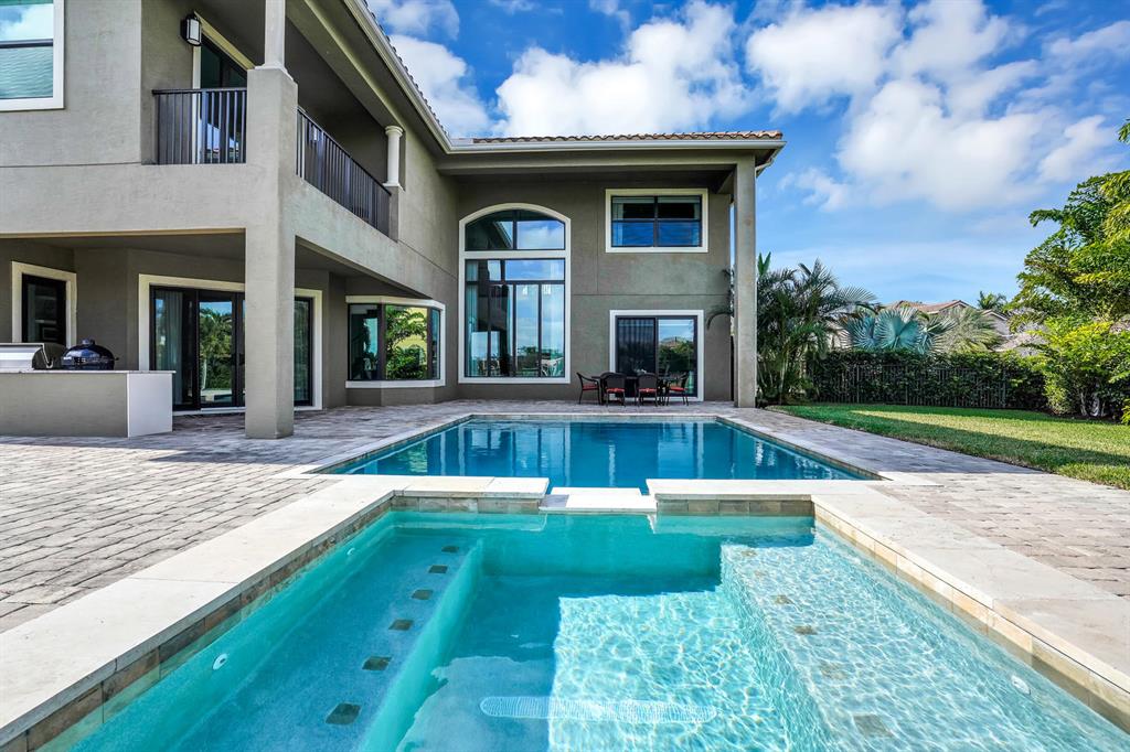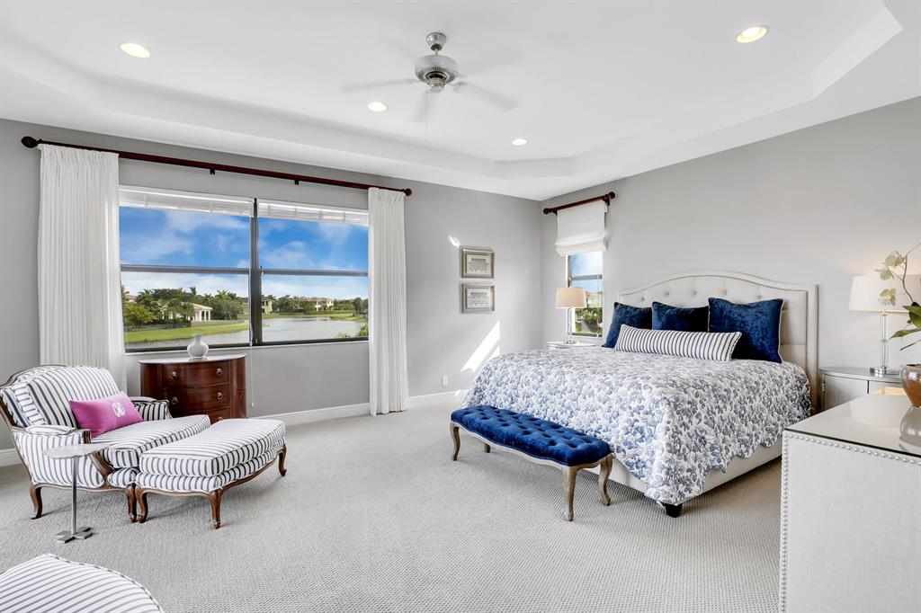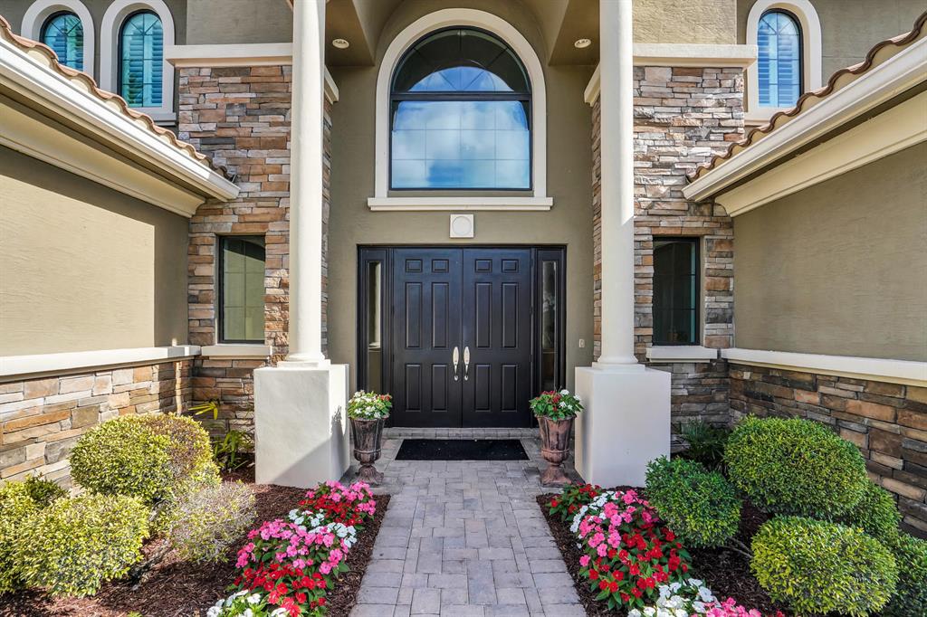 Upgrades Galore, This is elegance at its best! Enjoy the long lake view from the chef's kitchen with upgraded white cabinets, quartz, and top of the line appliances including extra large range, farmhouse sink and two wine coolers. This better then new home has impact windows, stone exterior and gorgeous stone flooring on the first floor. Hardwood floors on spiral front entry staircase, 2nd stairway off of kitchen, loft and hallways on 2nd floor. This home has one bedroom and an office on first floor. Beautiful upgraded window coverings are showcased throughout. Resort-like outdoors with a salt water pool/spa and out door kitchen. The master bedroom boasts a spa like feeling with upgraded cabinetry, shower and jacuzzi tub. This home has a 3 car garage with high tech garage coating.