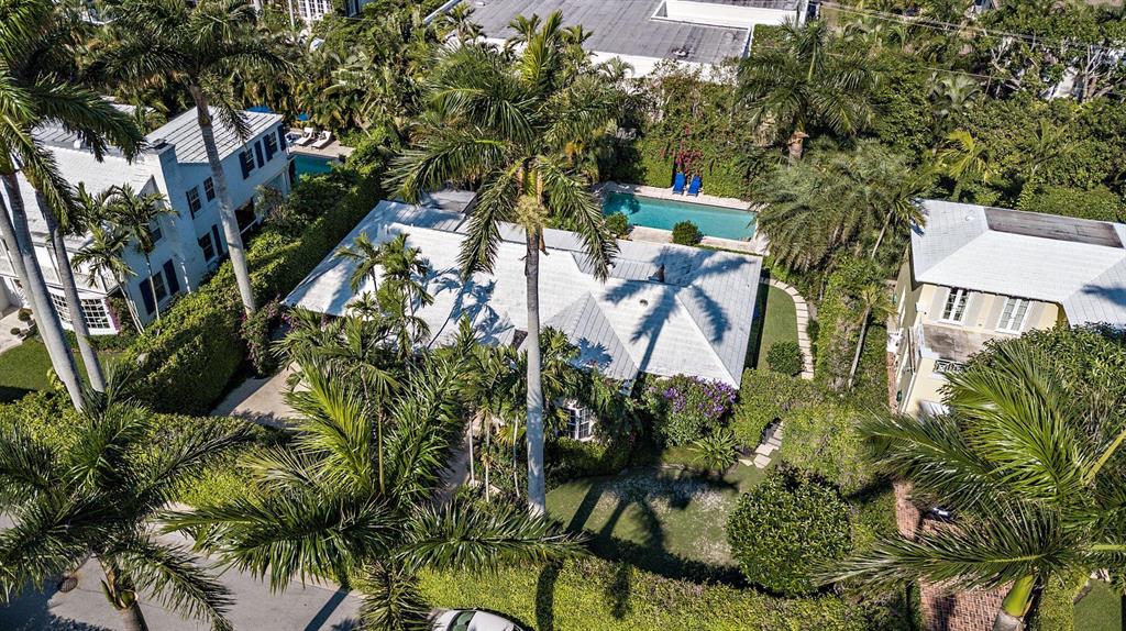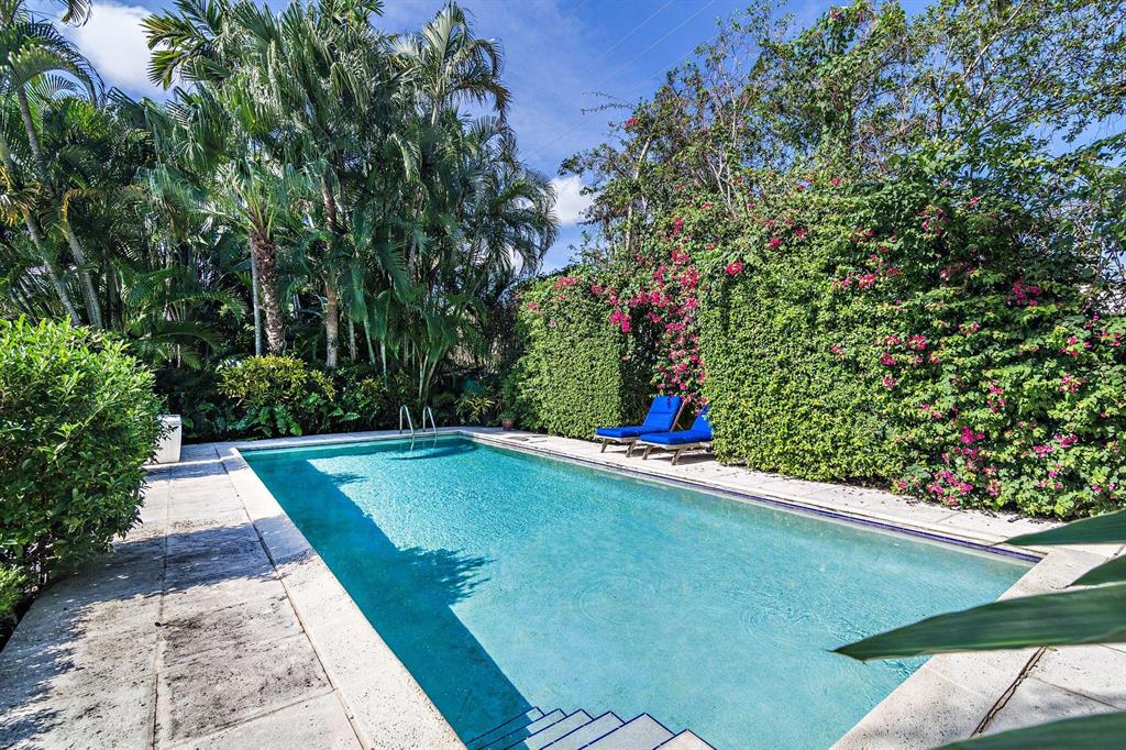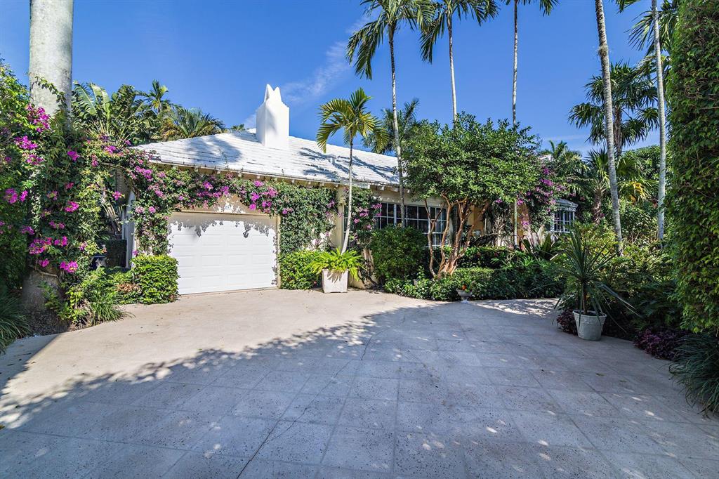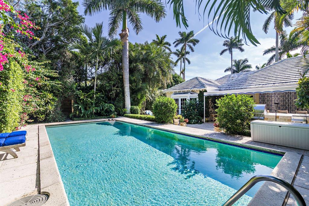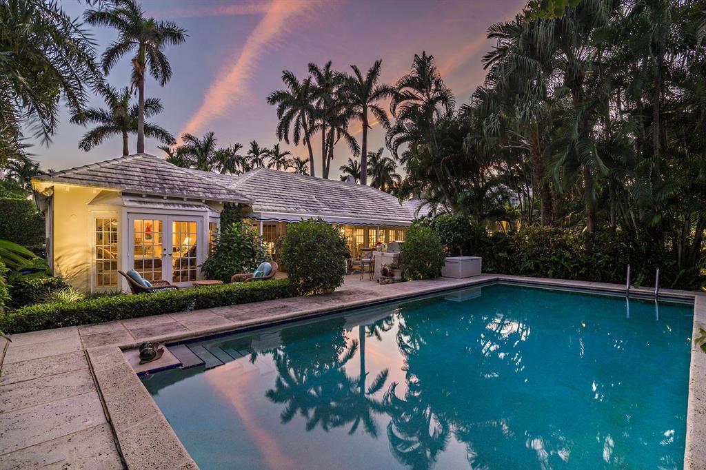 Located on an oversized 100x120 property, this 4 bedroom, 4 bathroom home is a private island oasis on one of the most desirable, palm tree lined streets in Palm Beach. With three bedrooms and three bathrooms in the main residence and a separate 1 bedroom, 1 bathroom guest suite, the home offers a voluminous vaulted ceiling, light-filled rooms, hurricane-impact windows and doors, expansive outdoor entertaining spaces, and a one-car garage. The private and lushly-landscaped rear gardens boast a large pool, multiple exterior patios, barbecue area, and a luxurious outdoor shower.