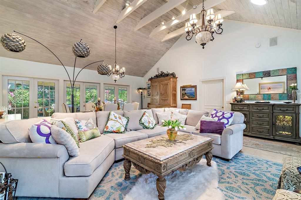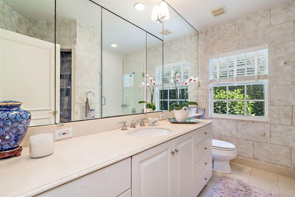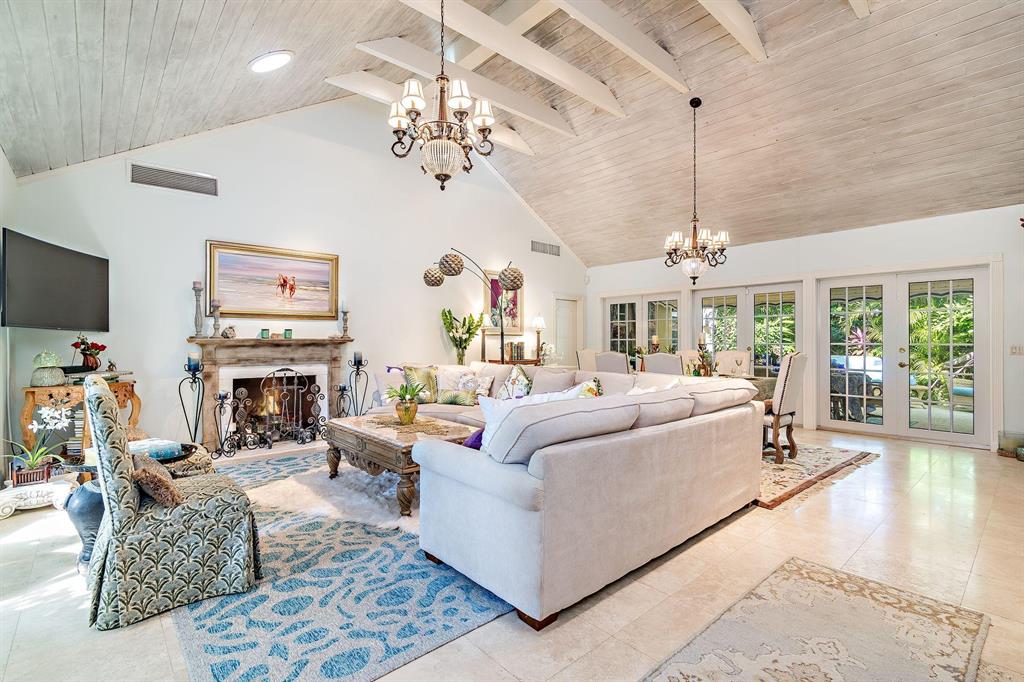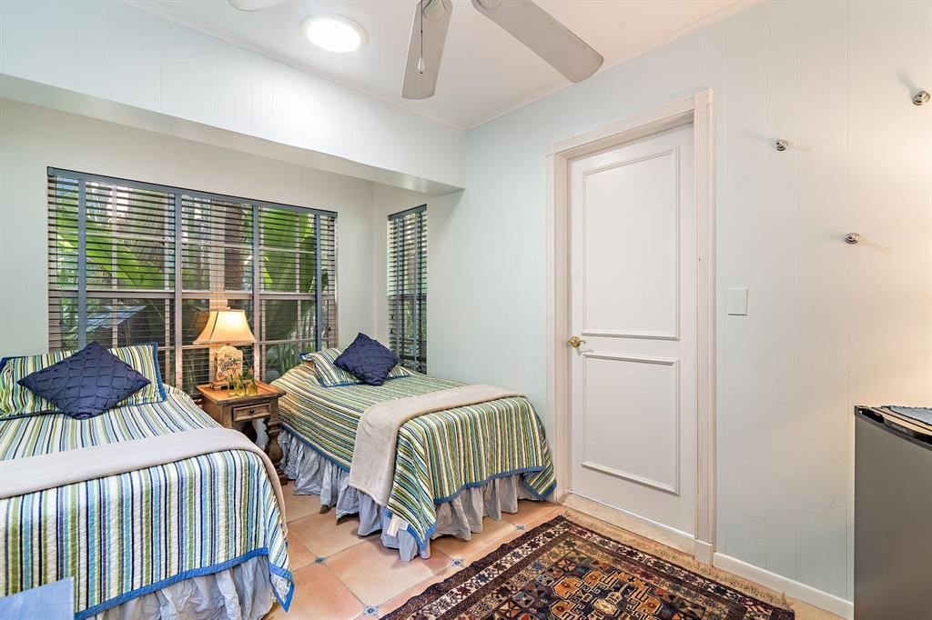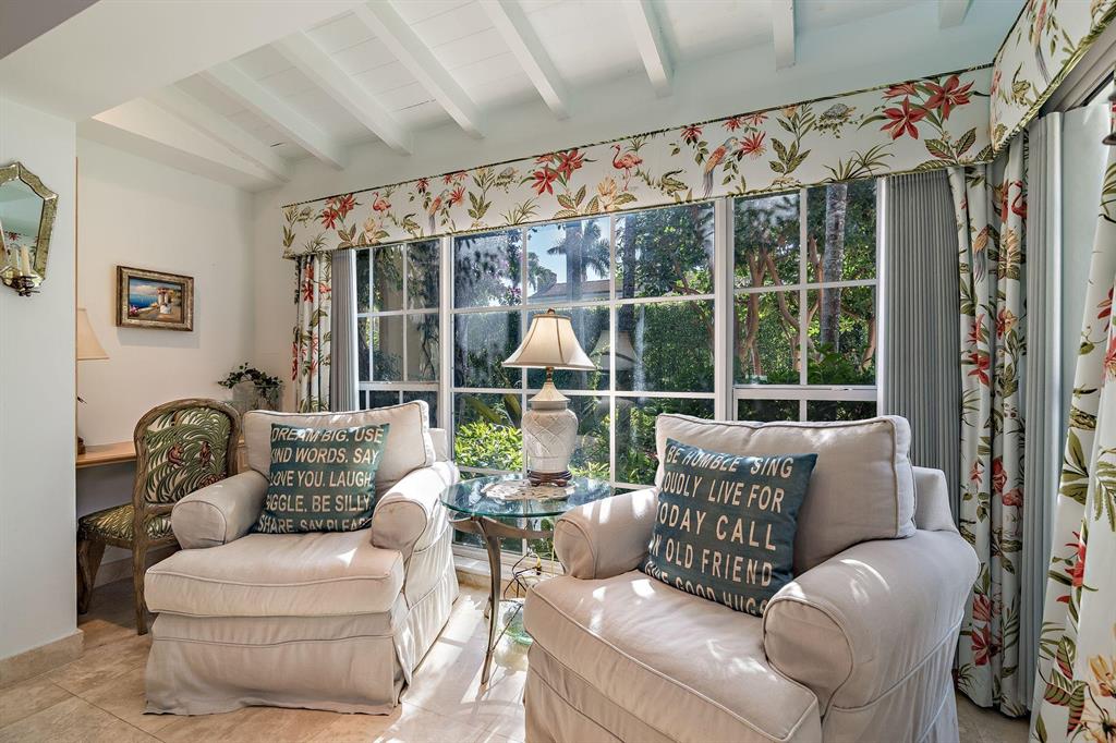 Located on an oversized 100x120 property, this 4 bedroom, 4 bathroom home is a private island oasis on one of the most desirable, palm tree lined streets in Palm Beach. With three bedrooms and three bathrooms in the main residence and a separate 1 bedroom, 1 bathroom guest suite, the home offers a voluminous vaulted ceiling, light-filled rooms, hurricane-impact windows and doors, expansive outdoor entertaining spaces, and a one-car garage. The private and lushly-landscaped rear gardens boast a large pool, multiple exterior patios, barbecue area, and a luxurious outdoor shower.