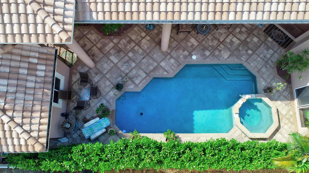 4085 Avalon Pointe Drive is a gorgeous 5BR/4BA, courtyard home with idyllic lake views. Once through the iron gate entry, your first sight is the amazing courtyard. Entertaining is experienced at its best with the heated pool and spa, covered dining space and entry to the tiled, guest house with cabana bath. Inside the main home, you are greeted with Saturnia marble and a welcomingly open floor plan. The family room is bedecked with wood built ins and a view of the lake from the oversized backyard with patio and lawn space. The kitchen is upgraded with an oversized, granite island; double sink; commercial appliances such as a Viking gas stove, Thermador 34'' fridge and separate 30'' freezer.AC units: large less than 2 years, other units 1 year and 9 years