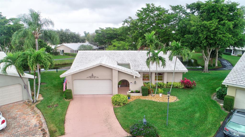 ALL AGES - PET FRIENDLY. Great lake views from this meticulously maintained 3/2 home in central Boca Raton. Home is located at the end of cul de sac. Part of the 2 car garage has been converted to a much desired inside laundry room. The home has some updates. Accordion and metal shutters provide storm protection. The gutters have screens to prevent leaves and debris. The driveway is cement. Community features 2 heated pools and is located close to I-95, Shopping and the Beaches. A Rated Schools and Sugar Sand Park across the street. Community is governed by Condominium, Maintenance includes: pressure cleaning roofs, lawn care, painting of homes every 5-7 years, sprinklers, pools and lake care + Dining Room Fixture does not convey.1 garage door clicker1 Pool Key 2 front door ke