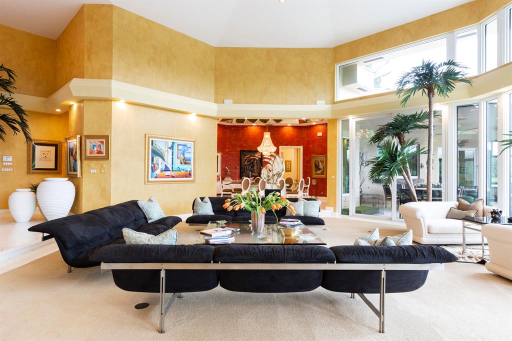 Spectacular trophy lot with breathtaking lake and golf course views. Situated on cul-de-sac. 1 story contemporary style property with 5 bedrooms plus den/office and entertainment center. Master with his and her baths with ample closet space. This home comes with total impact glass plus full house generator. The information herein is deemed reliable and subject to errors, omissions, and changes without notice. All measurements are approximate.