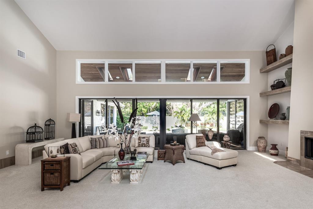 LOCATED IN THE EXCLUSIVE EAST BOCA RATON GATED COMMUNITY OF THE SANCTUARY AND NESTLED ON A LUSH PRIVATE TROPICAL SETTING. THIS 6,000+ SQ FT HOME BOASTS 4 BEDROOMS PLUS DEN, SOARING VAULTED CEILINGS, FORMAL DINING ROOM, 2 FIREPLACES AND A LARGE PRIVATE SWIMMING POOL WITH SPA. (see attached floor plan) OFFERED TURN KEY WITH ALL FURNISHINGS INCLUDED. A NEWER CONTEMPORARY KITCHEN AND NEW BATHROOMS HAVE ALL BEEN UPDATED. BOAT DOCKAGE IS AVAILABLE IN COMMUNITIES PRIVATE MARINA. HOME IS EASY TO SHOW!!