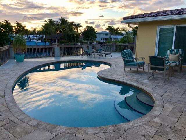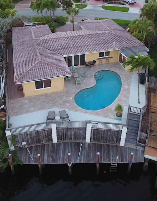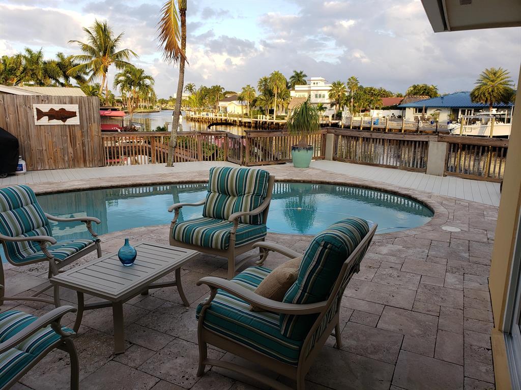 1 Fixed Bridge! This beautiful 3 bedroom house sits on the coveted Cypress Creek Canal with only one bridge to the Intercoastal Waterway and Ocean access. This home features custom lighting, custom closets, eat in bar in the updated kitchen, granite counter tops, open floor plan, kidney shaped pool and circular drive way. New air conditioner. The dock has built in storage for all your fishing and water activities. This is a must see for those who want to live and enjoy on this spectacular waterfront location.