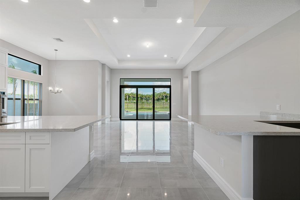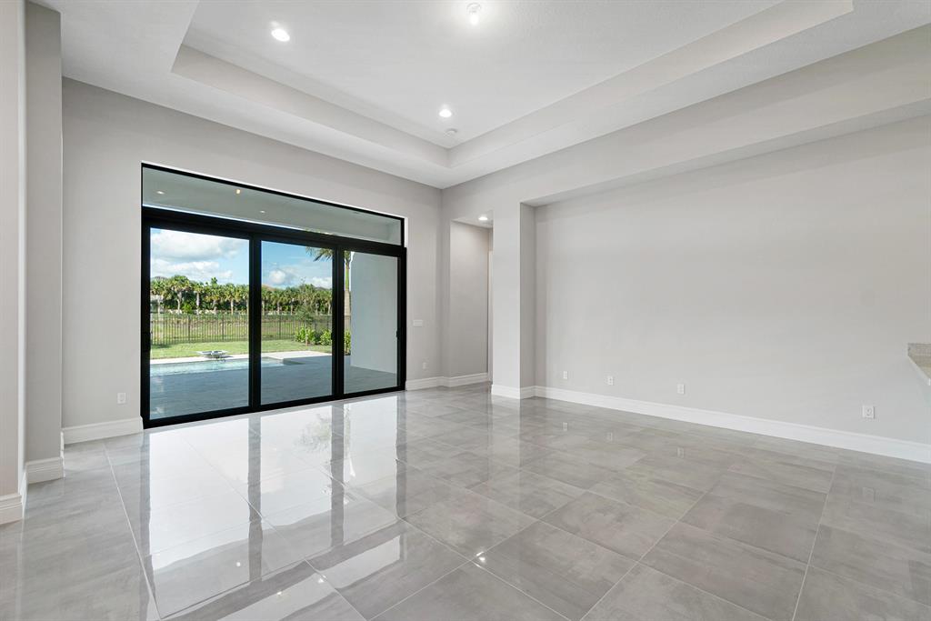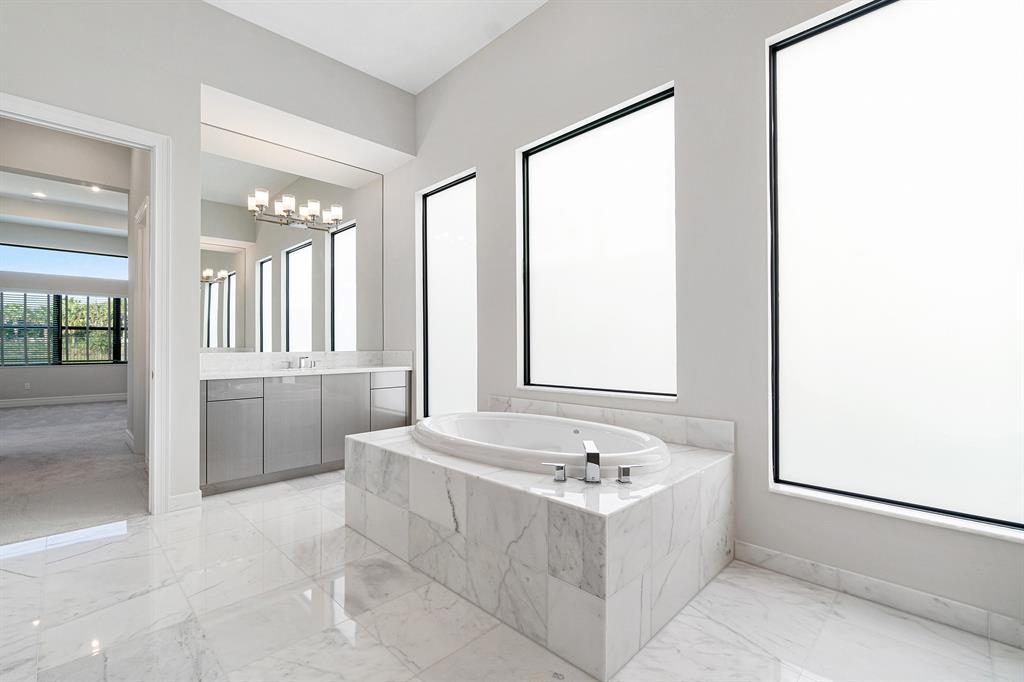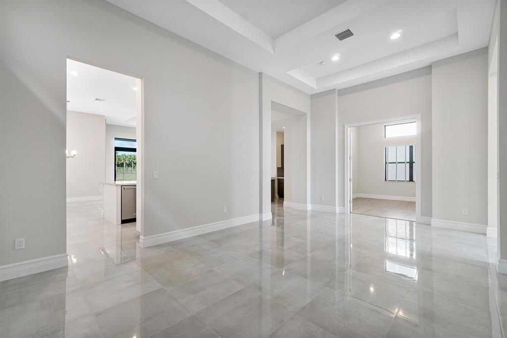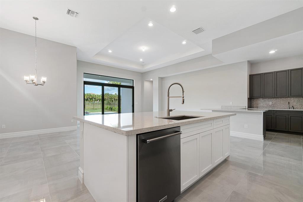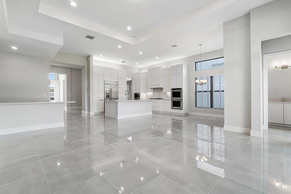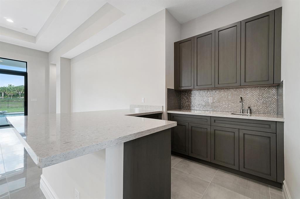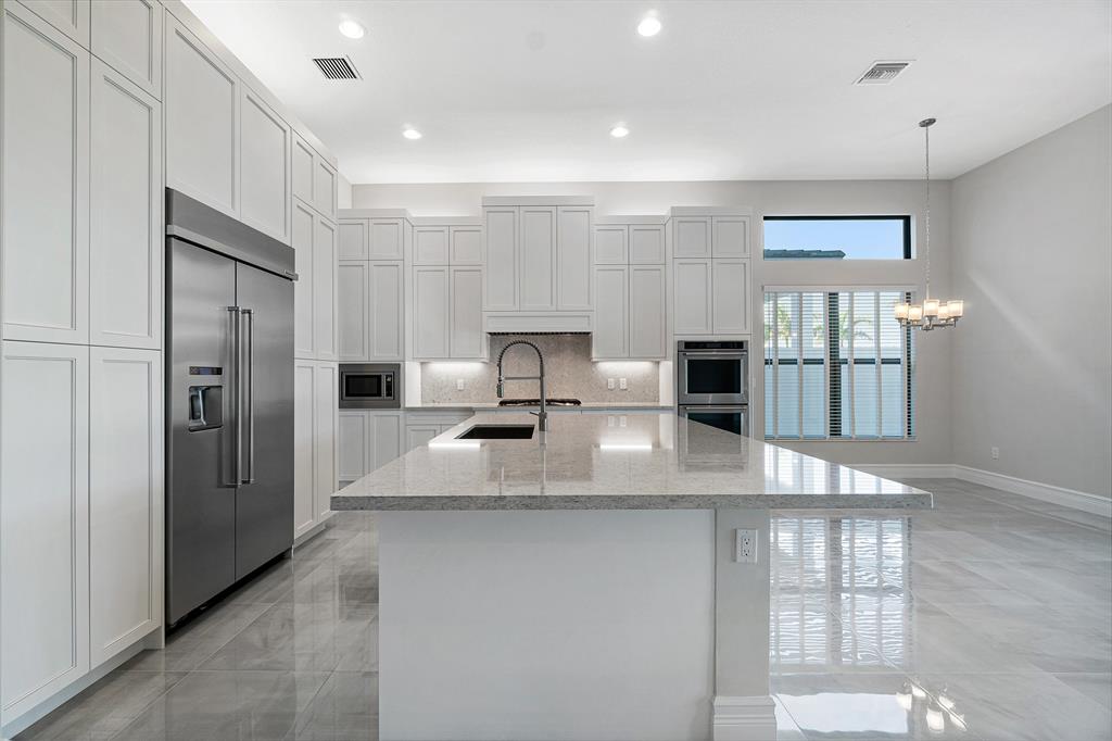 Breathtaking one-story home under construction in Boca Bridges. This Rialto contemporary model will be completed in August / Sept 2020. Throughout the main living areas, upgraded 24'' x 24'' polished porcelain tile seamlessly connects the open concept floor plan. The Kitchen includes upgraded Maple cabinets in Arctic White with an upgraded enhancement package including wood hood upper stacked cabinets, upper and lower cabinet lighting, pot and pan drawers, upgraded Quartz countertops with full backsplash and and upgraded stainless steel single sink. All appliances are stainless steel including a Kitchen Aid 42'' built-in refrigerator, double oven, microwave, 36'' six burner gas cooktop, 48'' chimney wood hood vented to exterior and dishwasher. The wet bar off of the kitchen includes --->
