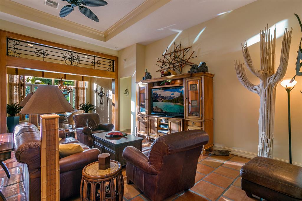 Casual, sophistication is what you find in this Villagio home. Located on water and the 17th fairway of the Tradition course. Tropical landscaping creates a private entertaining retreat with a summer kitchen and a newly resurfaced pool/spa. 4 New kitchen appliances and a new washer and dryer update the appliance package. This home has been redesigned from the original plan. 3 Bedrooms 3 baths plus den. Mexican clay tile throughout the living area. Master bath has a custom glass shower enclosure with a brushed steel shower tower system with granite seats and floors.