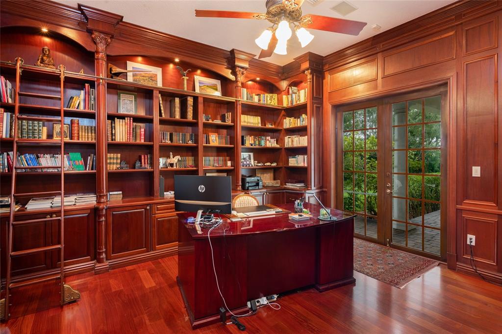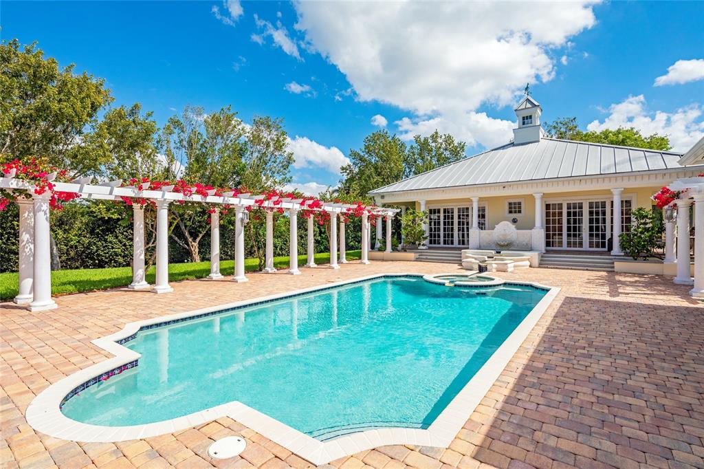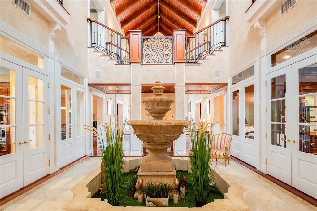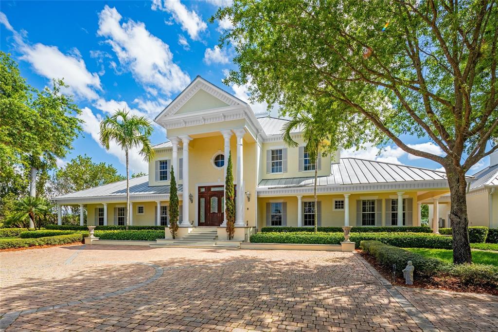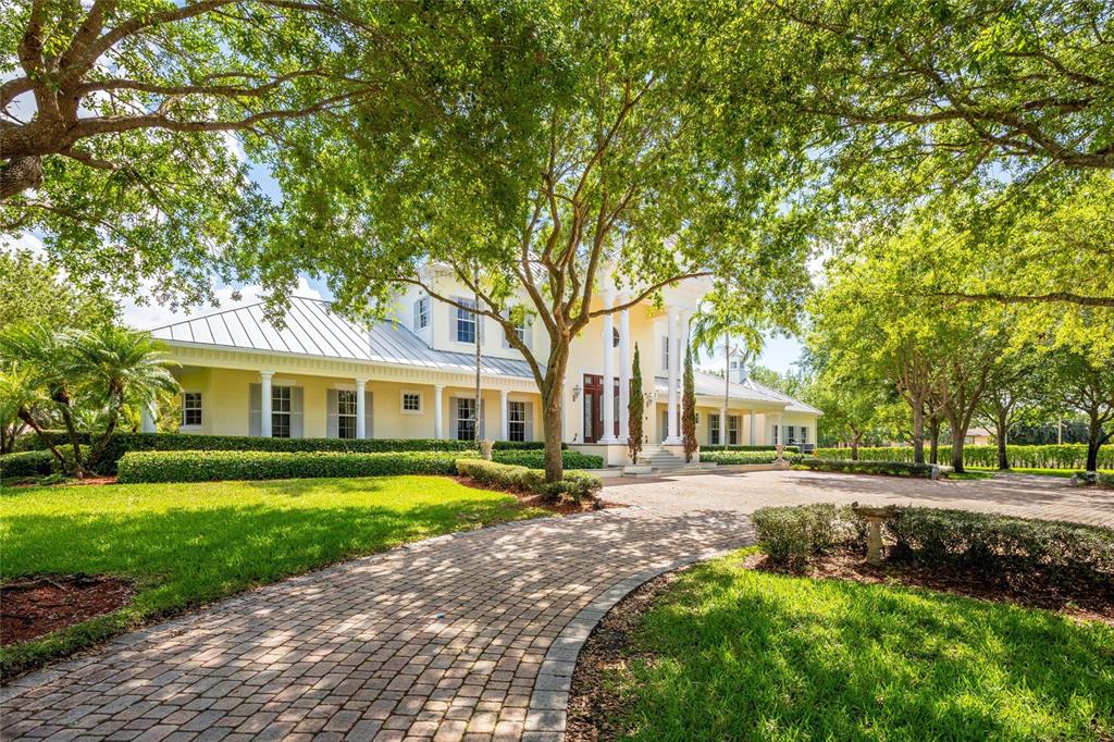 Stunning Sunshine Ranches gated compound on extensively landscaped corner acreage. Timeless Key West style w/metal roof & wrap around porches. Featuring a hotel style courtyard pool & fountain, summer kitchen, sport court & detached poolside guest house Casita. Stately living areas w rich details, built-ins, mahogany & marble floors. Elegant Chef's kitchen w center island, commercial grade stove & hood, chilled wine closet & morning dining room. Downstairs Master Suite and bath + guest suite off kitchen. Upstairs game room, 3 bedrooms each w full baths. Family room w fireplace & horseshoe bar overlooks the pool courtyard. Interior fountain gathering area off kitchen & family room offers a unique setting w adjacent library/den. Winding live oak drive w 2 entry points & detached garage.