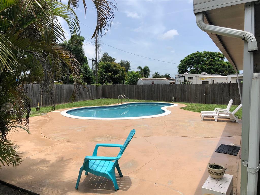 Fully fenced large yard with SALT WATER POOL. Large patio screened over looking pool area. This 3/2 home has alot of charm. Tons of potential with the right owner. Freshly painted interior. Loads of closets. No HOA! Terrazzo floors in the bedrooms, Large living room with adjoining study area! Separate laundry and storage area attached to the house. This house is just waiting for new owners. Thank you for showing!