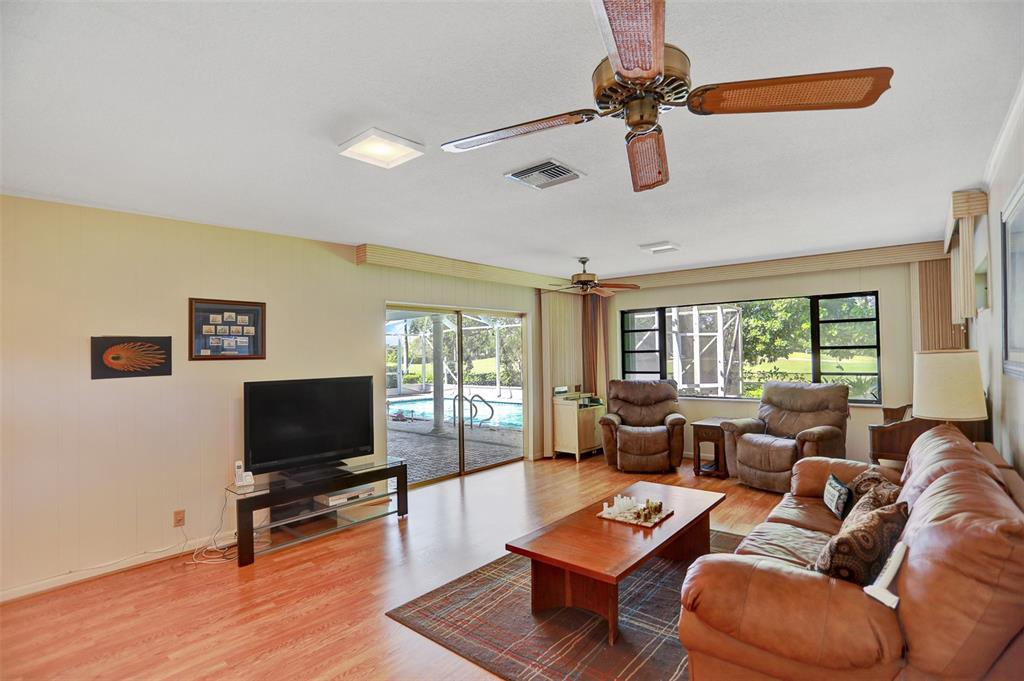 Full of light and located in coveted EMERALD HILLS right on the GOLF COURSE. Quiet street, perfect for kids to play and ride bikes! HUGE 5 BD/4 full BR home, including 2 cabana bathrooms, with a split floor plan and separate in-laws/nanny area. GREAT LAYOUT! Master and front BD both have closets and spacious bathroom within. TONS of big closets though out the house with plenty of storage space. OVERSIZED LR, family room and dining room all right off the kitchen that has a breakfast area facing the GIGANTIC pool and patio. Two car garage with room for extra storage as well. ENORMOUS 14k+ lot with big yard and roomie front drive. Two ACs in excellent condition/almost new keeping this massive home cool. Storm shutters on all windows. Location, layout and size..THIS HOUSE WON'T LAST!