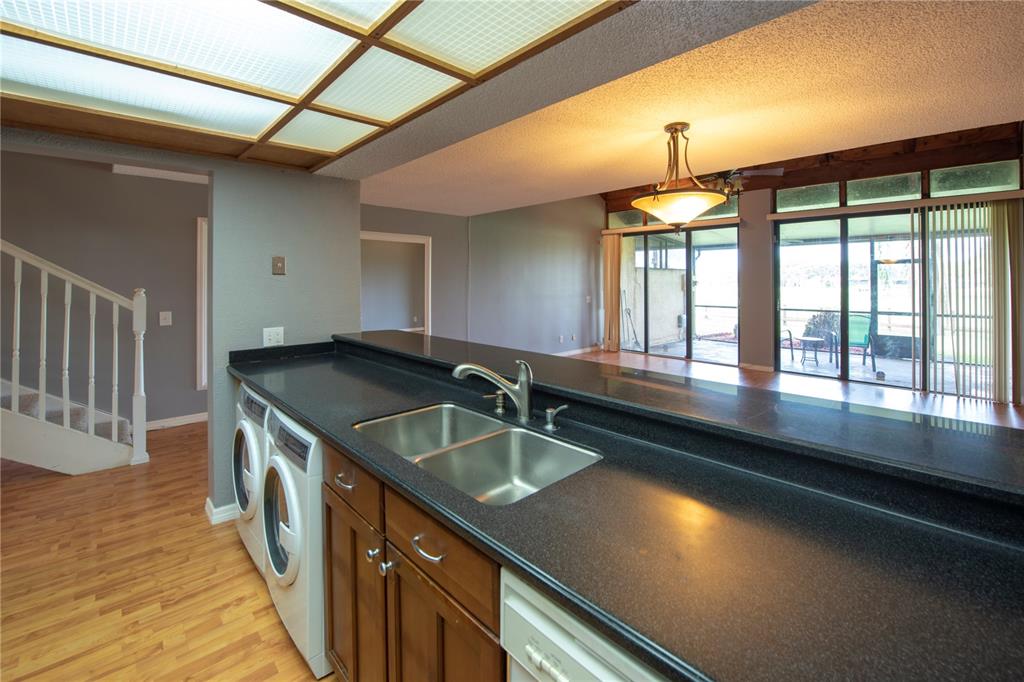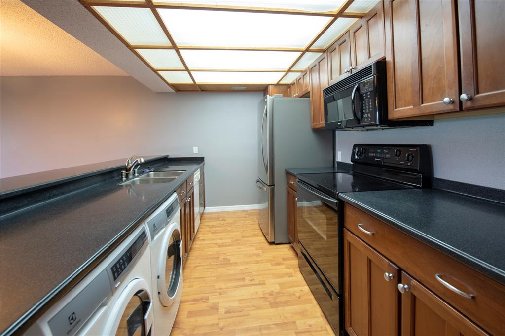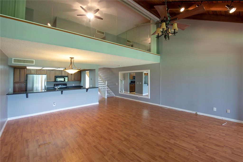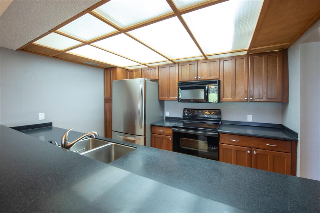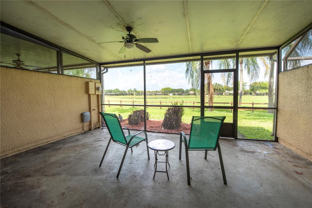 3/2 with beautiful lake and water view. Watch the Sun go down from your roofed and screened patio. Very open and spacious. 1 bedroom and 1 bath downstairs (Jacuzzi shower/tub and Pedestal sink). Kitchen is totally open to DR/LR with a Corian style countertop. Newer SS refrigerator, stove/oven, under the counter washer/dryer (dishwasher is original) and tankless hot water heater. Master BR is large and has a transparent privacy wall w/blinds looking over into the downstairs. Master bath has an extra large shower with nice tile and a double sink counter. Pretty courtyard entry, 2 parking spaces. Complex was just recently painted, no assessment. Community Pool, Tennis and mailboxes close by. (maintenance only $120. mo) Close to Memorial West, Pembroke Lakes Mall and Publix. Call LA to show.