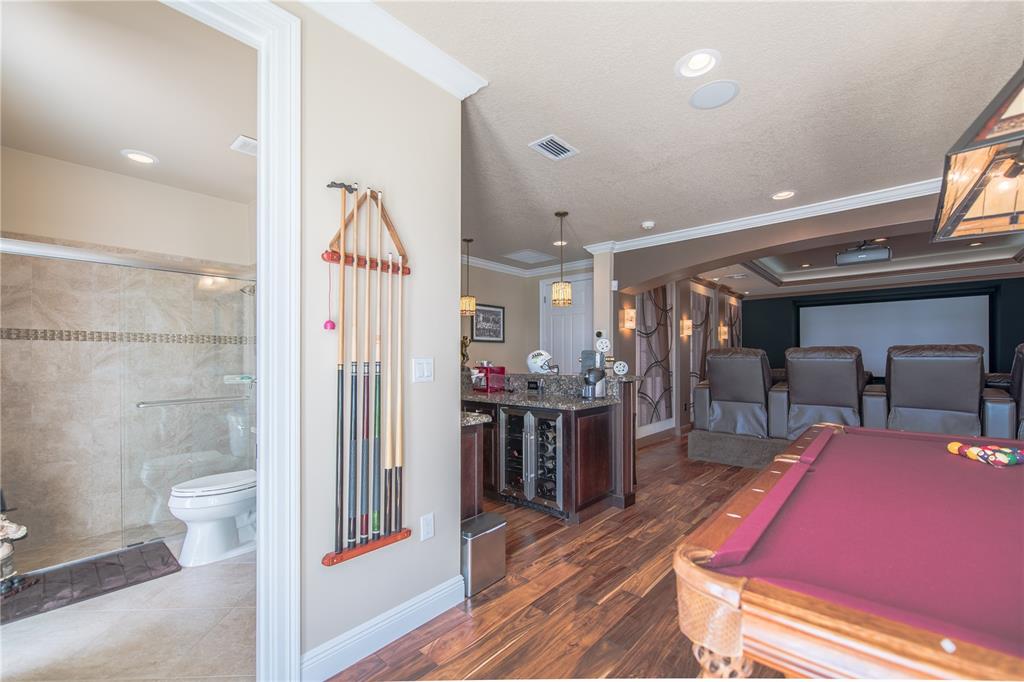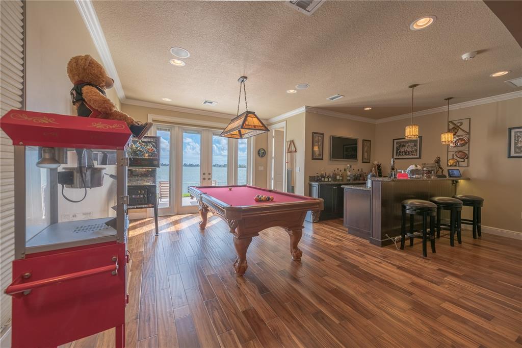 Pristine home in impeccable condition with a spectacular 16,285 SF oversized lot and 120 degree lake views on this cul-de-sac, boasting 5195 SF with 5bed/6baths plus a big loft, 3 master bedrooms, main master bedroom is on the first floor along with another mini suite with its own private bathroom. Porcelain and wood floors. New roof, new 3 H.E. A/C units, new water heater, new S.S. appliances & washer and dryer, accordion shutters, new seawall of 190 feet long. A magnificent addition over 800 SF to the house where you have a Media Room with 1080P Projector,120 inches screen, 7.2 sound system with klipsch speakers, 8 recliner electrical leather seats, full bar w/pool table, wine cooler. Amazing resort-style pool & Jacuzzi.