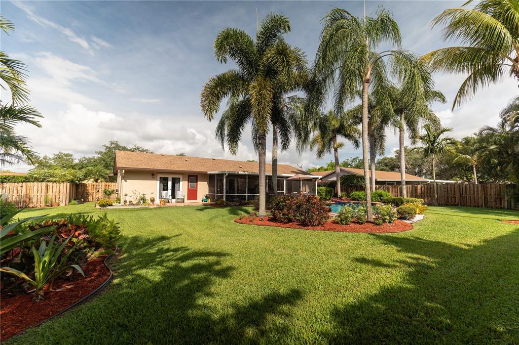 Move In Ready! Fabulous well-maintained home on one of the largest corner lots (approx. 1/2 acre) in Cooper City's highly sought after "Rock Creek" community. Beautifully landscaped and manicured fenced yard with awesome curb appeal. One-story home, 3 bedrooms/ 2 baths/ 2 car garage with a screened-in patio and open pool. Exterior and interior freshly painted, new roof and gutters (2016), garage door (2016); Bosch dishwasher, light fixtures and fans. Crown molding in dinning and living room areas. Updated kitchen with granite counter top, both bathrooms completely remodeled. Large tile flooring in living area, along with engineered wood (living room) and laminate (bedrooms).