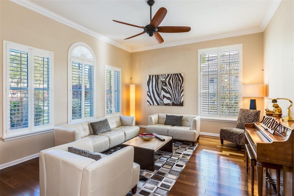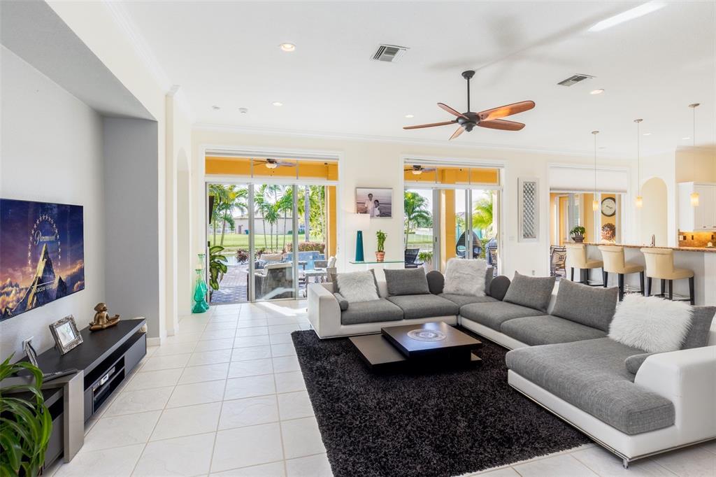 Elegant wide lakefront pool home on over 1/2 acre lot in gated, luxe community of Hibbs Grove. This is the largest one story plan built. Open & inviting w volume ceilings, formal living & dining, huge family room & eat-in kitchen overlooks the 41ft covered patio w motorized retractable screens & extended sunshade awnings, pool & lake. Kitchen features newer stainless appliances, granite,extended white wood cabinets & walk-in pantry. Huge Master suite and bath w walk-in closets has direct pool & water view. Great bedroom layout w 4 bedrooms & 2 adjacent baths. Separate 6th bedroom/den just needs closet door. Extras include accordion hurricane shutters, built-in closet systems. Tropically landscaped grounds, oversized 3 car garage.HOA includes lawn care, cable, alarm
