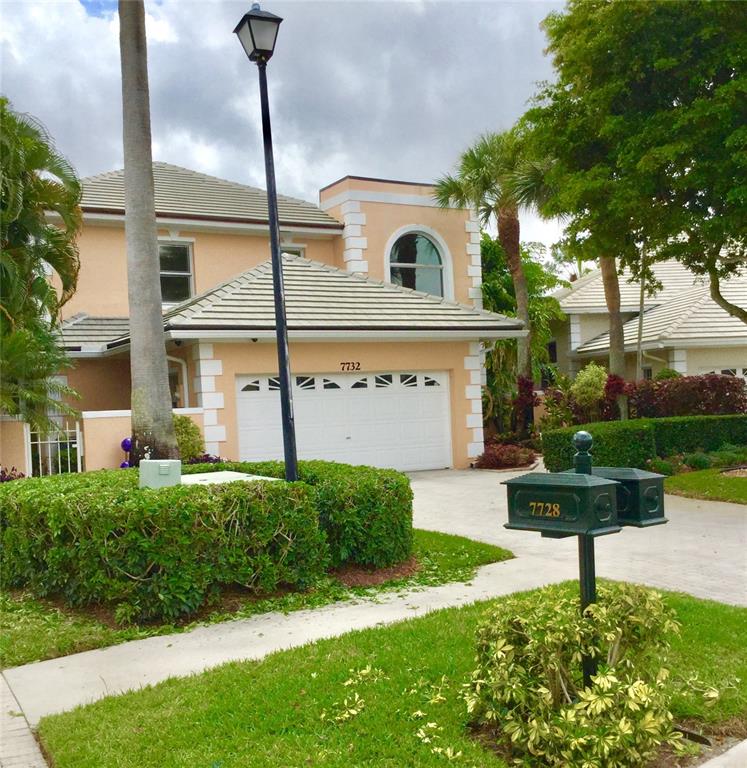 Boca Pointe C.C. NO Membership required. Beautiful 2 story Resort Style home (GATED) community, with 2 master suites, one up, one down. 3 bedrooms with a loft. . New A/C, New Roof. 20ft. ceiling. Remodeled baths. The floors are beautiful. Outside patio is very quiet. Lots of beautiful landscape which can be seen from every room. Great location 5 min to Mall, I-95, and turnpike. Schools, Del Prado, Omini and Spanish River.