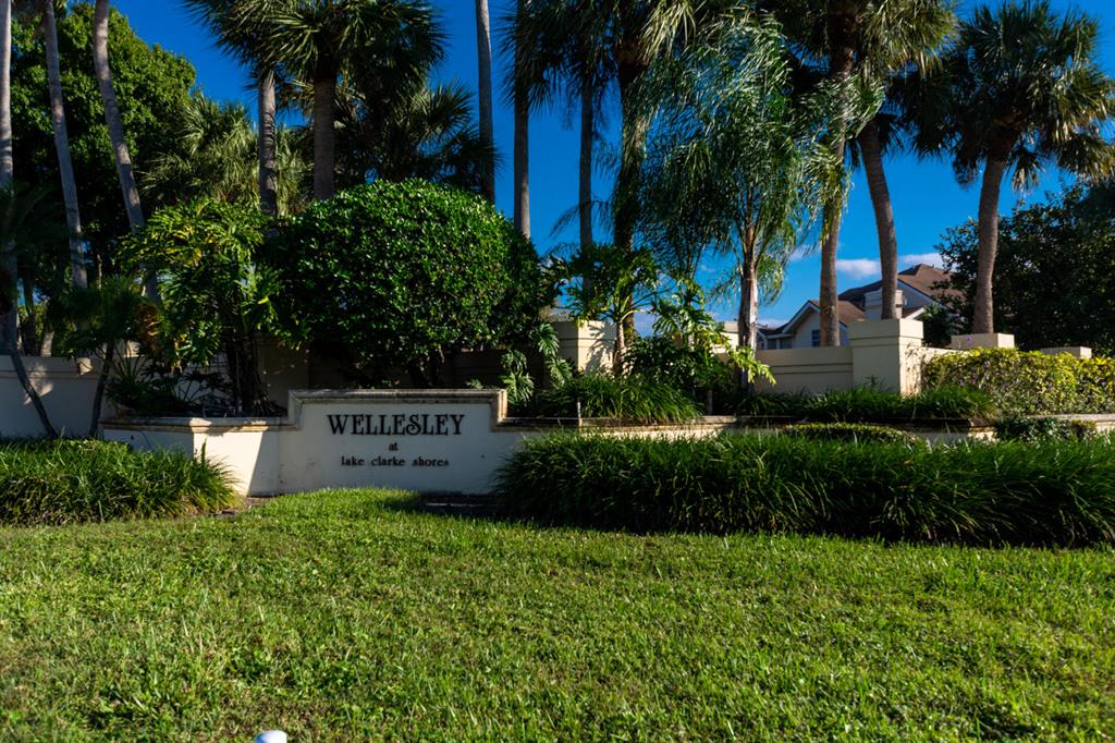 Bright and spacious! Rarely available townhouse in the beautiful gated community of Wellesley in Lake Clark Shores. Upgraded unit with NEW stainless steel appliances, plantation shutters, freshly painted and no carpets. Hurricane accordion shutters throughout. This well maintained property features two master suites and a fenced patio perfect for entertaining and relaxing.The HOA covers 24/7 manned-gated security, water, sewer, basic cable, roof repairs and replacement, community landscaping, exterior building maintenance and exterior insurance.