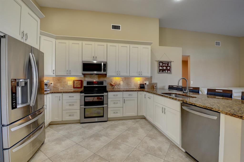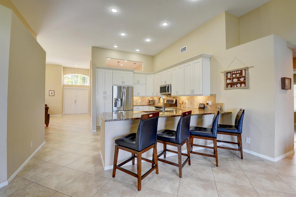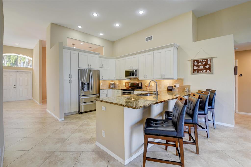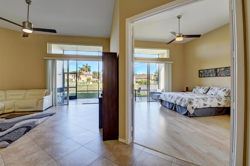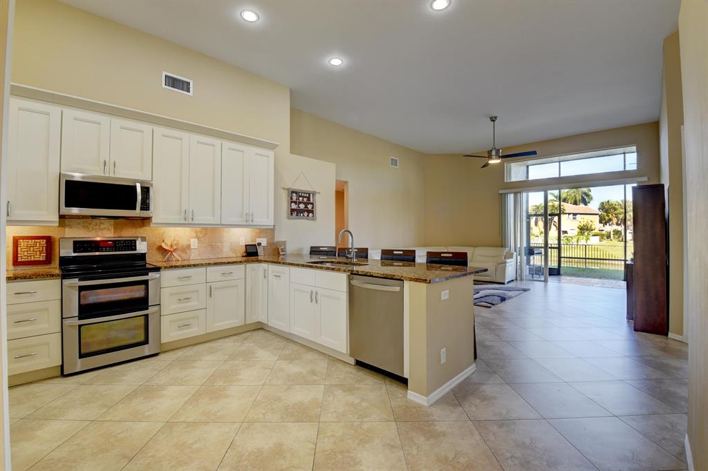 Magnificent Boca Isles South Beauty. 4 Bedrooms, totally redone to perfection. A Rated schools. This waterfront home has dazzling lake views. The double door entry opens to a large foyer. Living Room and Dining Room are bright and airy with many windows. Perfect for entertaining. The modern kitchen is a chef delight with new custom cabinetry, granite countertops and travertine backsplash. All newer LG appliances and Kohler fixtures. The kitchen opens to a large family room and oversized tiled screened patio. New porcelain tile in all the living areas plus upgraded laminate floors in the bedrooms. The master suite has a double door entrance and outstanding bathroom with dual sinks, Mirabelle faucets, stall shower and soaking tub for relaxation. There are His and Her walk-in closets too.