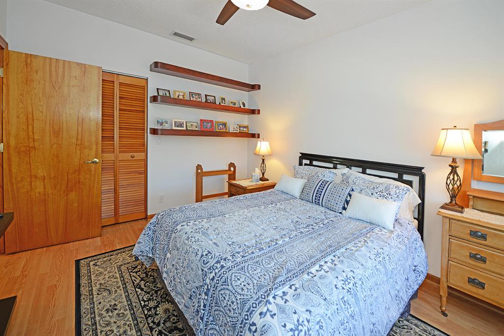 **DON'T SWEAT THE VIRUS. THIS HOME IS VACANT AND VERY EASY TO SHOW**. Inviting views of the golf course and lake, this 4 bedroom (master downstairs) + office home with 3 and a half bathrooms features hardwood floors and volume ceilings. In the Hamilton Place section of Woodfield Country Club, features includes an open kitchen with 42'' oak cabinetry and stainless steel appliances and full hurricane protection with electric roll down shutters. Brand new 80 gallon hot water heater and new dishwasher. Screened in pool and patio area overlooking the golf course.