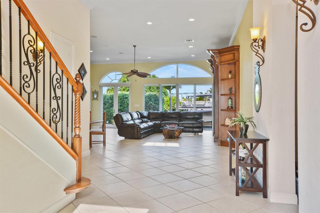 Fabulous two-story custom waterfront home built in 2007 in Pompano Isles.6 bedrooms 4.5 bathrooms plus an office. 10 minutes to the Hillsboro Inlet with no fixed bridges. Enter the 22' ceiling foyer, 12' first floor, 10' second floor .The great room opens to large entertaining area, gourmet kitchen & dining. Over 3100 ft.A living space. All high impact glass, 2 A/C units, 2+ car garage, 5 of the 6 bedrooms have walk-in closets. Beautiful staircase off the foyer which leads to a great sitting or TV loft area. Brazilian hardwood floors throughout the second floor.The master suite is on one side and has a private balcony, direct water view. Huge master his/her closets with tons of storage and spacious master bathroom with spa tub.Three large bedrooms & two more bathrooms complete second..