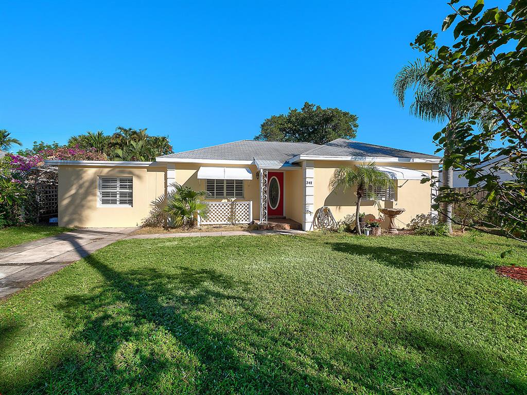 Lovely, 3Bd/2Ba Ranch style home. The designer chef kitchen with brick walls and granite countertops, and practical with stainless steel, open shelving, and a large built in pantry. Original solid oak hardwood floors throughout, and a gorgeous Eucalyptus floor in the 'step down' private suite. Bedrooms are roomy and bright with large plantation shutters. Fenced large backyard. An exotic variety of fruit trees - including a Kari starfruit, two dwarf mango trees, and a Giant Mulberry. Two delightful 'Bahamian style' sheds with lights and plenty of shelf storage. Located on a quiet street a few blocks from the intracoastal, and some of the best restaurants in the area, this home is minutes from the beach , the Norton Museum of Art, Kravis Center, Antique Row, downtown West Palm Beach