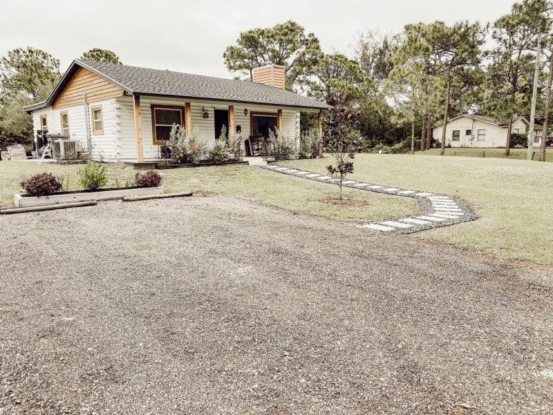 Feel at home in this lovingly maintained log cabin with a quaint fully tiled front porch. New siding and exterior trim (2019), roof (2018), impact windows (2018), water heater (2018), water softener system (2016), interior light fixtures and recessed lighting throughout (2019) are just a few property features. The house also offers new hardwood floors throughout, new plumbing fixtures (including toilets and sinks), new tile and tops in the baths, and a marble master bathroom with a high-end vanity. The intimate classic cooking space has a custom antique kitchen island with seating and durable concrete countertops. LG appliances are included. Enjoy a cozy evening around the wood burning fireplace. It has a new surround mantle and hearth. This and so much more awaits you!