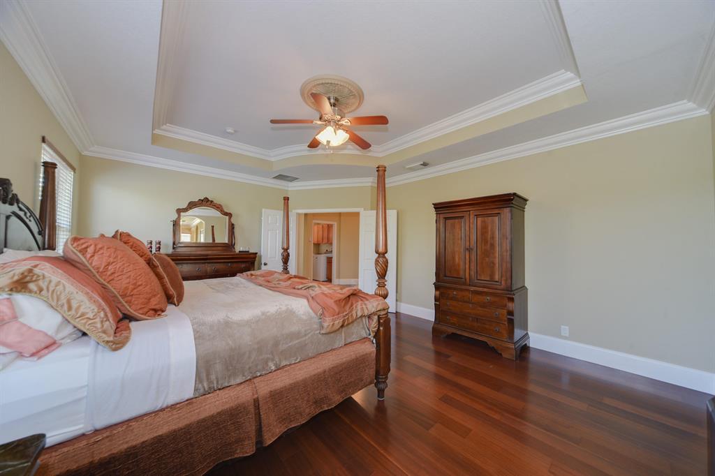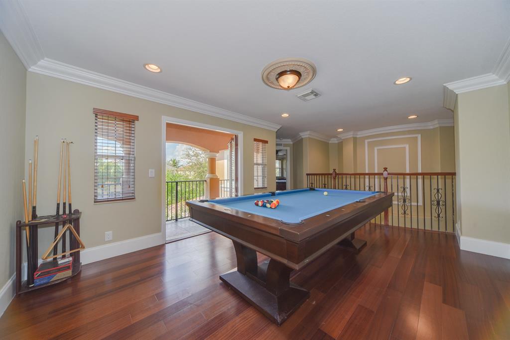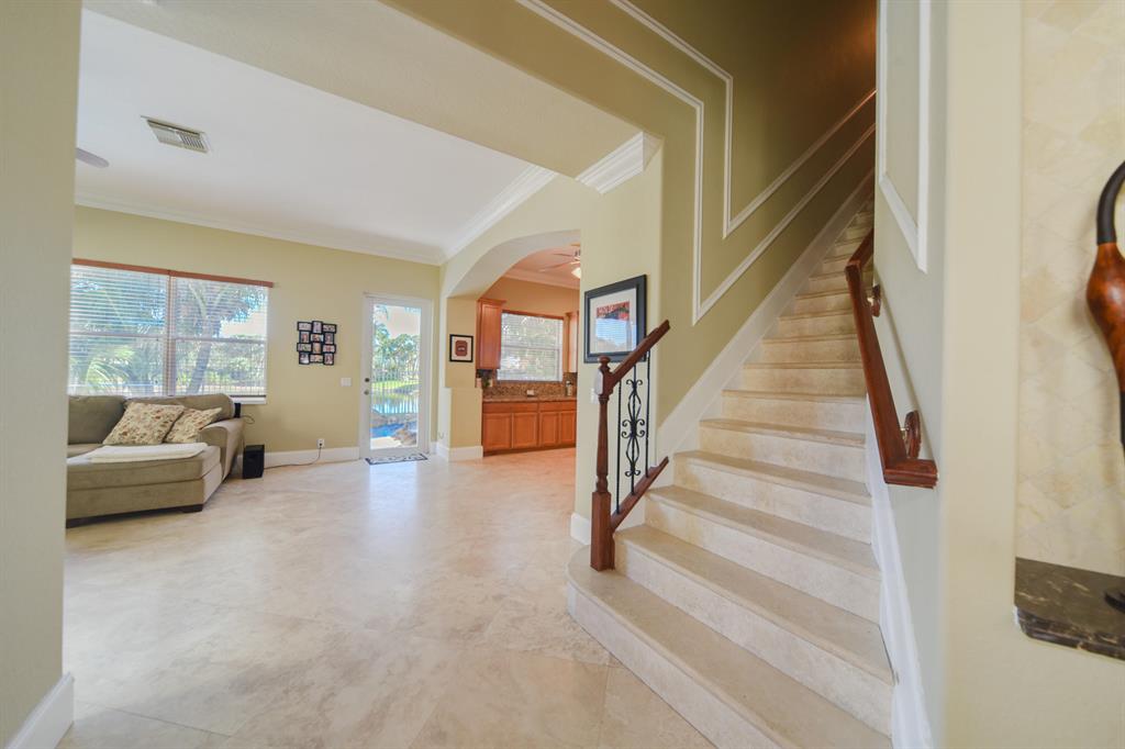 Welcome to Terracina! This gorgeous 5 bedroom 4 bath lakefront pool home is almost 3400 sf of living space. In addition to 1 bedroom and full bath on the first floor, it also has a dedicated office/den with a separate entrance. On the 2nd floor you will find 4 additional bedrooms , a loft area which currently accommodates a pool table and an upstairs laundry room. The master bedroom not only offers a grand spa like bathroom but has 2 walk-in closets AND a bonus room which could be used for a variety of things such as a yoga studio, fitness room or nursery. The possibilities are endless. Let's talk about the finishes...the first floor has Travertine tile throughout, over-sized baseboards and fantastic crown mouldings both upstairs and down. The entire 2nd floor has gorgeous wood