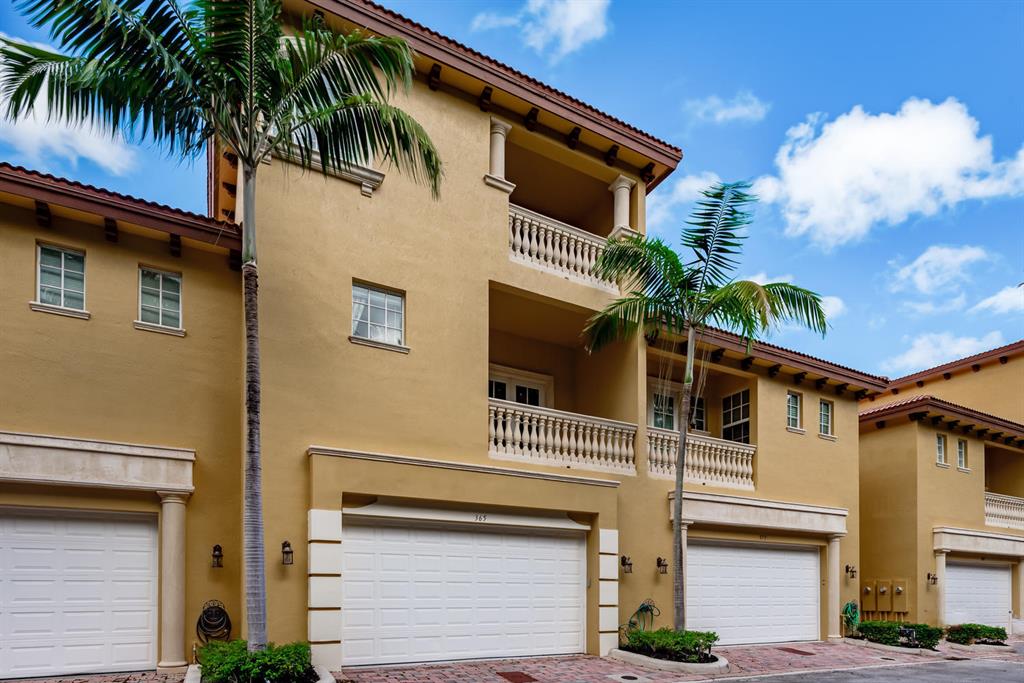 Magnificent 3-story t/h located in a Mediterranean inspired E Boca gated community. This meticulously maintained 3000+ sq ft t/h is situated on N side of Tuscany Village overlooking peaceful tropical forest. It is bright, spacious, has private elevator, modern finishes& hurricane windows throughout. The 1st floor open concept living space offers updated kitchen with: 42in wood cabinets, carrara quartz counter tops, stone back splash, SS appliances, under & over cabinet lighting; living & dining rooms with coffered ceilings, crown molding, marble floors, LED lighting & glass staircase railings. The 2nd floor has spacious family room, 2 beds & 2 balconies & oak flooring. The 3rd floor has spacious master suite with den/office/workout area & 2 balconies with tranquil views of forest & pool.