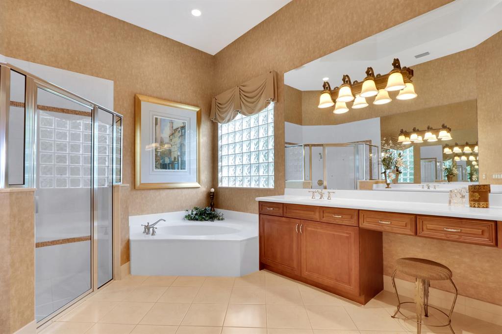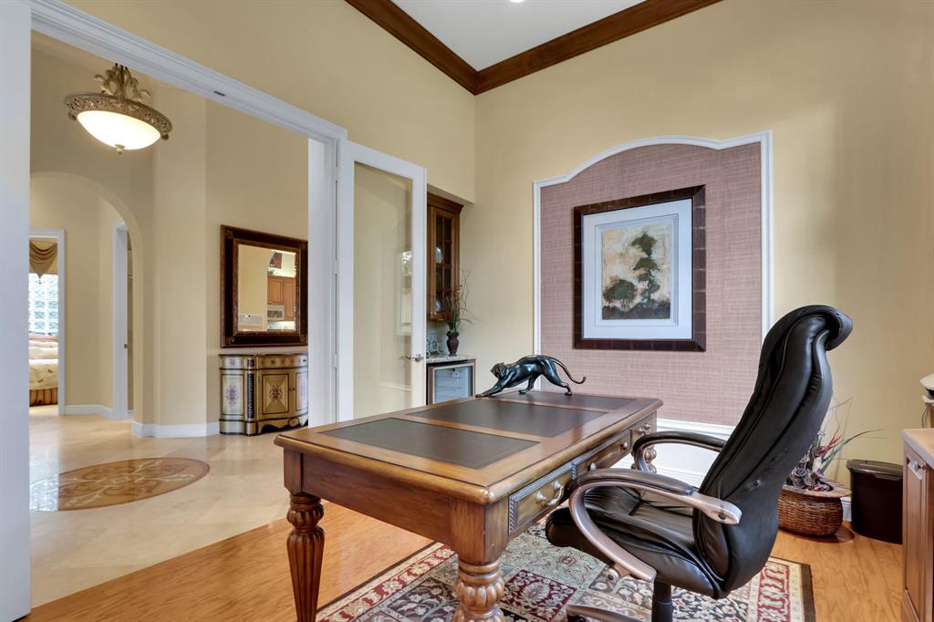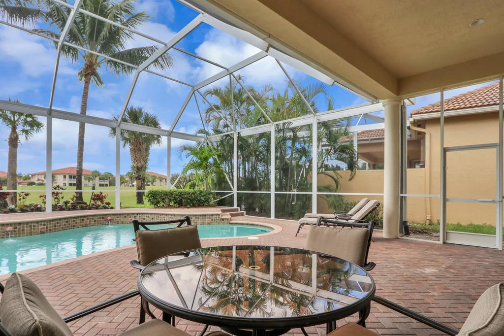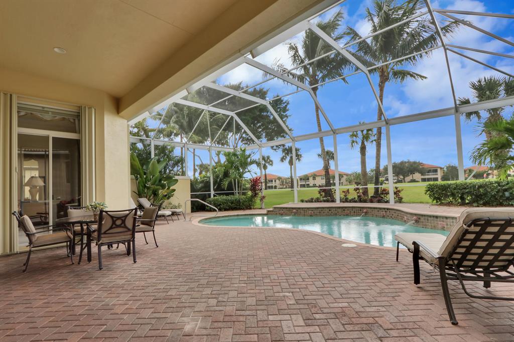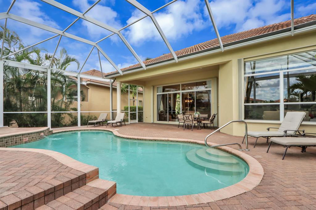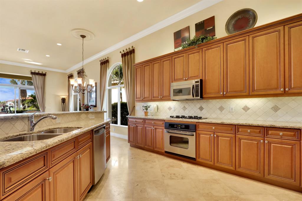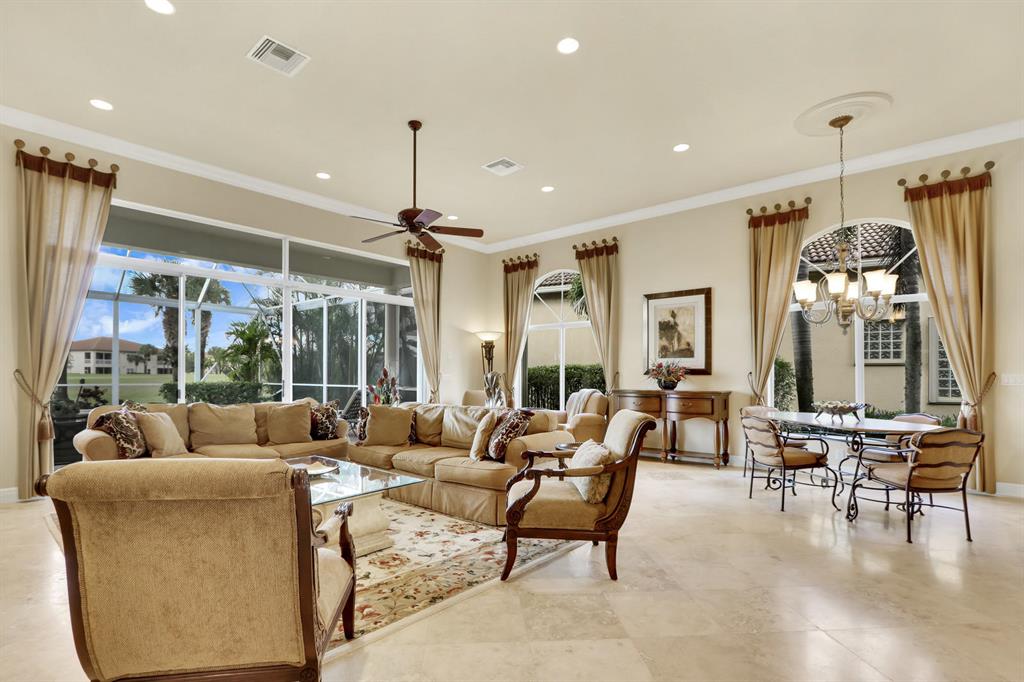 Stunning builder's model home set on an oversized lot. This expanded ''Riviera'' model boasts 3BR/BA+Den+ a Bonus room. There are more than $100,000 in upgrades in this home both from original and subsequent upgrades. Stunning marble floors with a an elegant medallion at the entry. Custom built-ins, designer window treatments and light fixtures along with elegant crown moldings and designer accents throughout. Accordian shutters, large screened Lanai, over-sized pool with lion fountains, NEW AC, NEW refrigerator, NEW pool heater and pump, NEW washer/dryer, Extra high hats throughout. ALSO OFFERED TURNKEY AND THAT PRICE would include golf cart with NEW batteries , NEW garage openers, NEW TV's, dishes, pots, silverware, kitchen appliances, outdoor furniture, designer