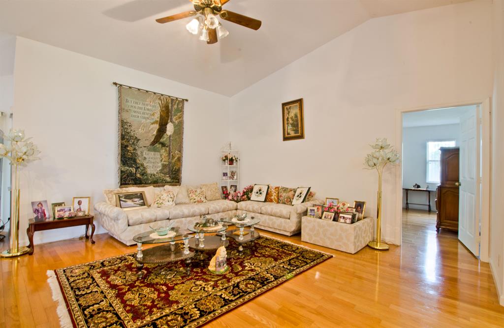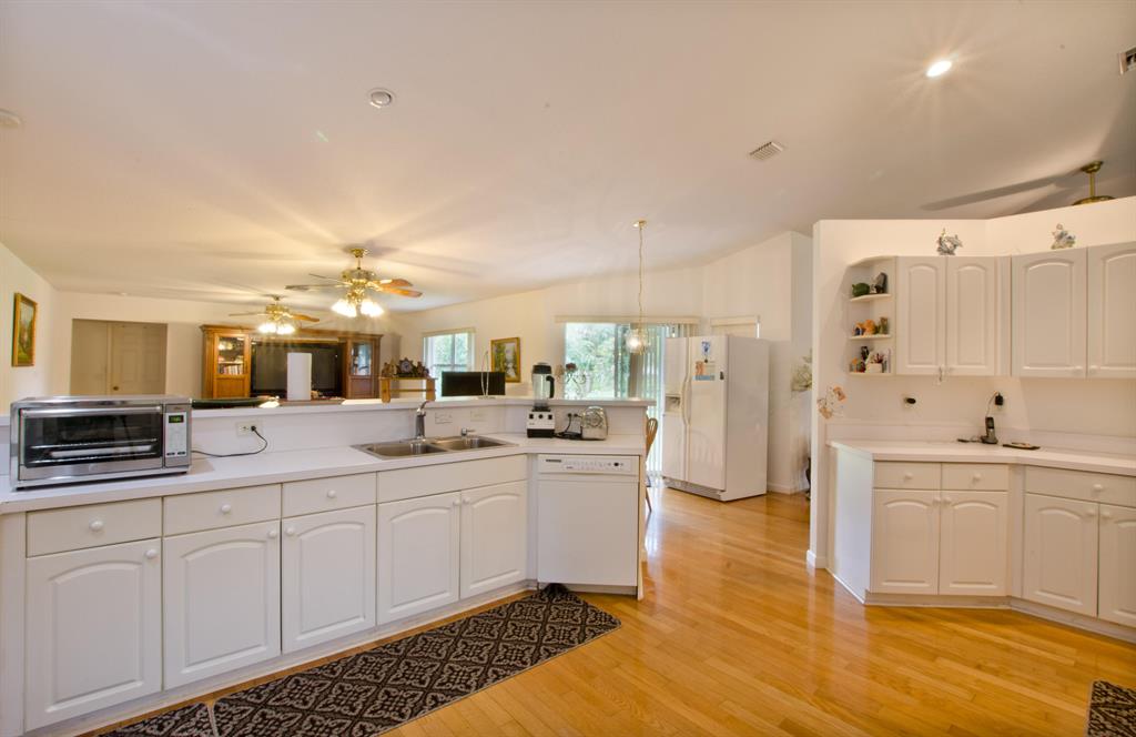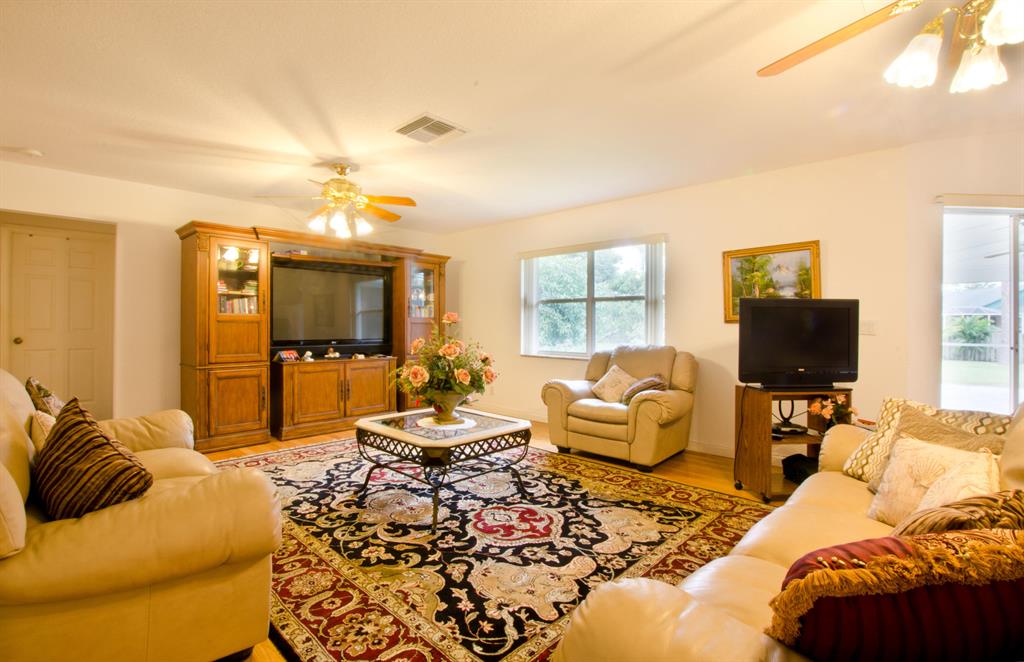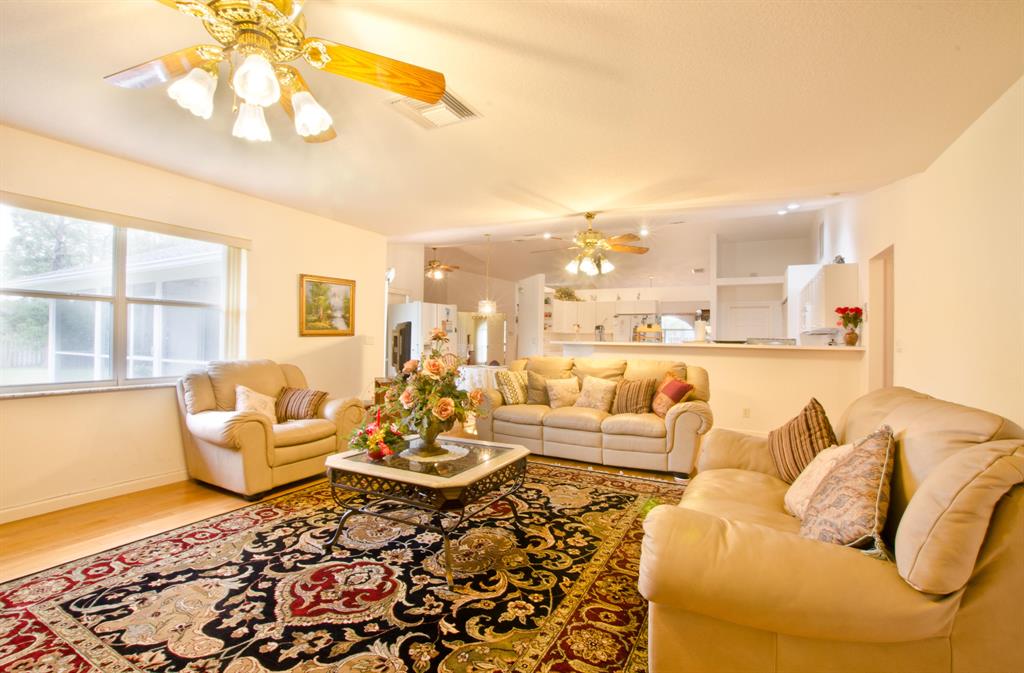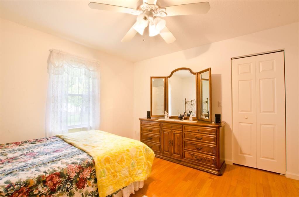 Pampered & spacious home with 4 bedrooms, 3 full bathrooms, plus office, possible in-law set up. ALL bedrooms have walk-in closets! GORGEOUS hardwood floors throughout (except bathrooms). 3 way split bedroom plan, HUGE family room (23x20), over sized 2 car garage with storage! Beautifully maintained lot (NO POND!) w/ sprinkler system throughout, alarm system, shutters, and on a paved road! Screened in patio, close to everything!! NO HOA!!