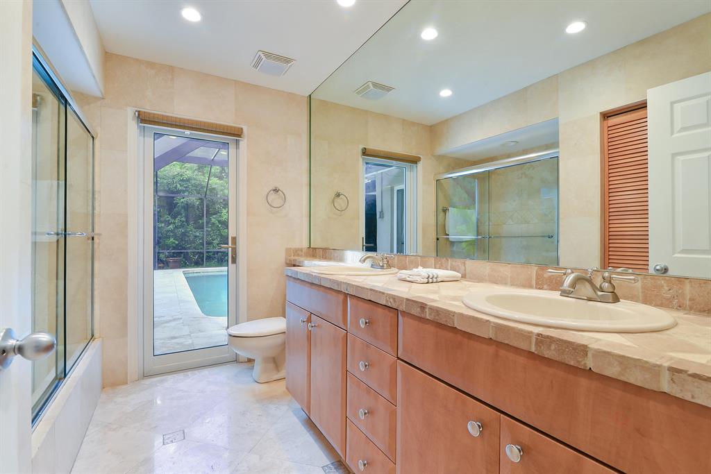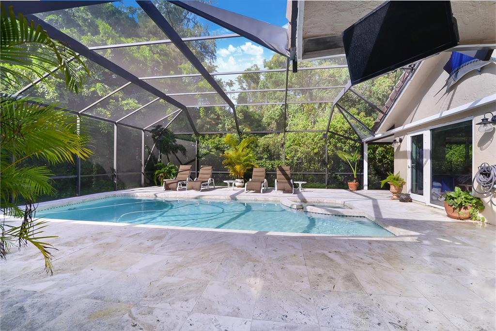 Remodeled 4/3 home with beautiful screened in oversized pool & spa. Enjoy pool views from the Master bedroom, Great room, breakfast nook. The home is in very unique and quiet location on a nature preserve with a neighbor on only one side. The master bedroom has built ins. Master bath room has a extra large jacuzzi tub and frameless steam shower. Huge safe in her master walk in closet.