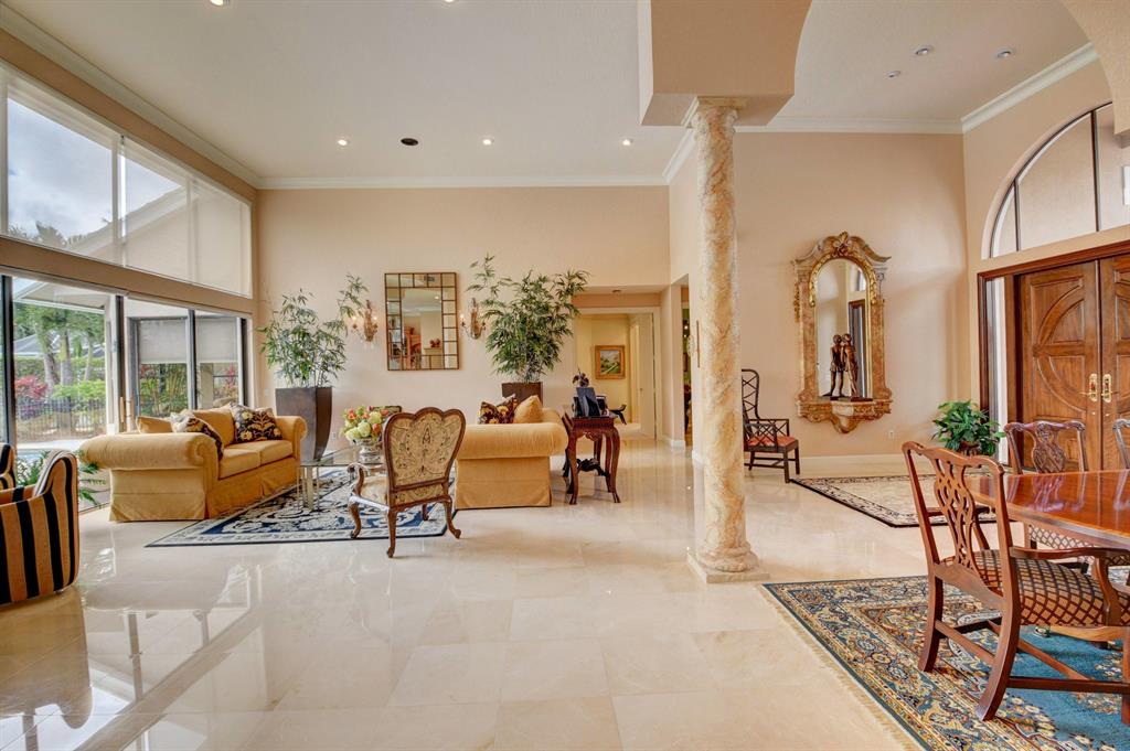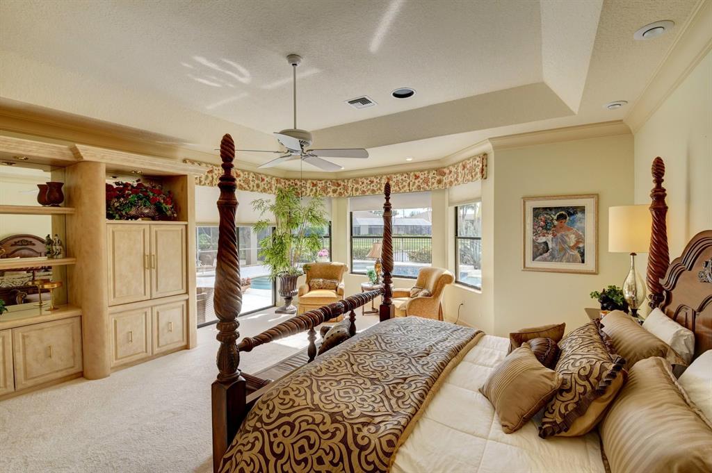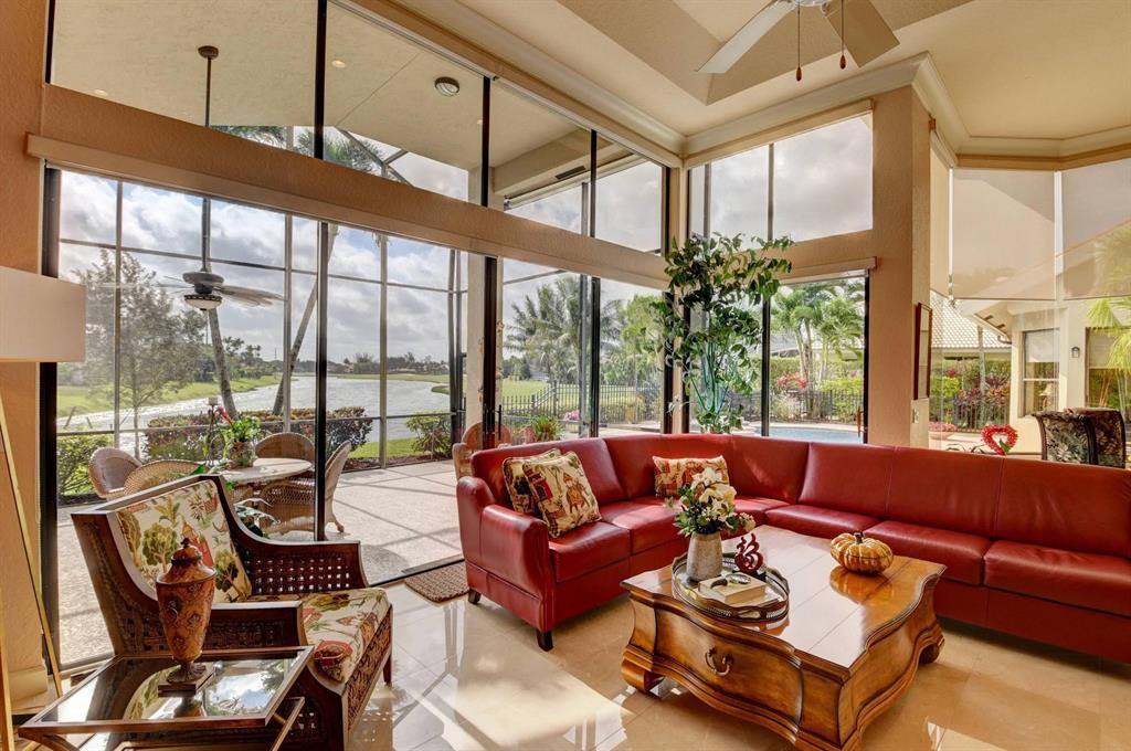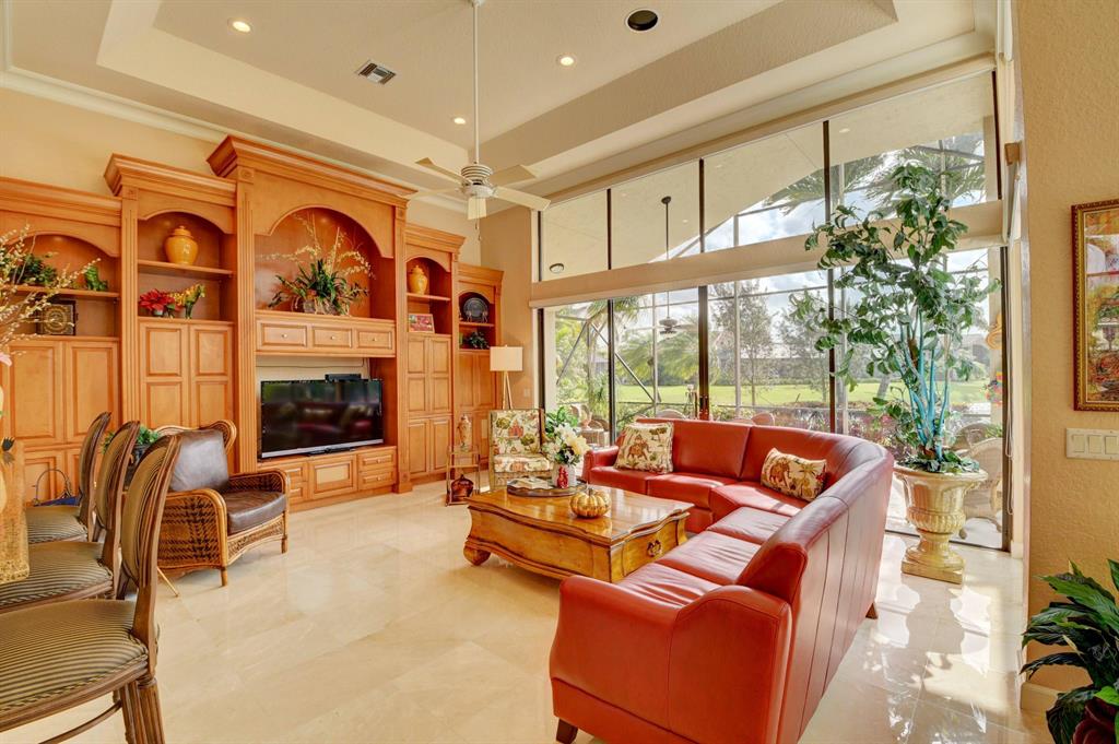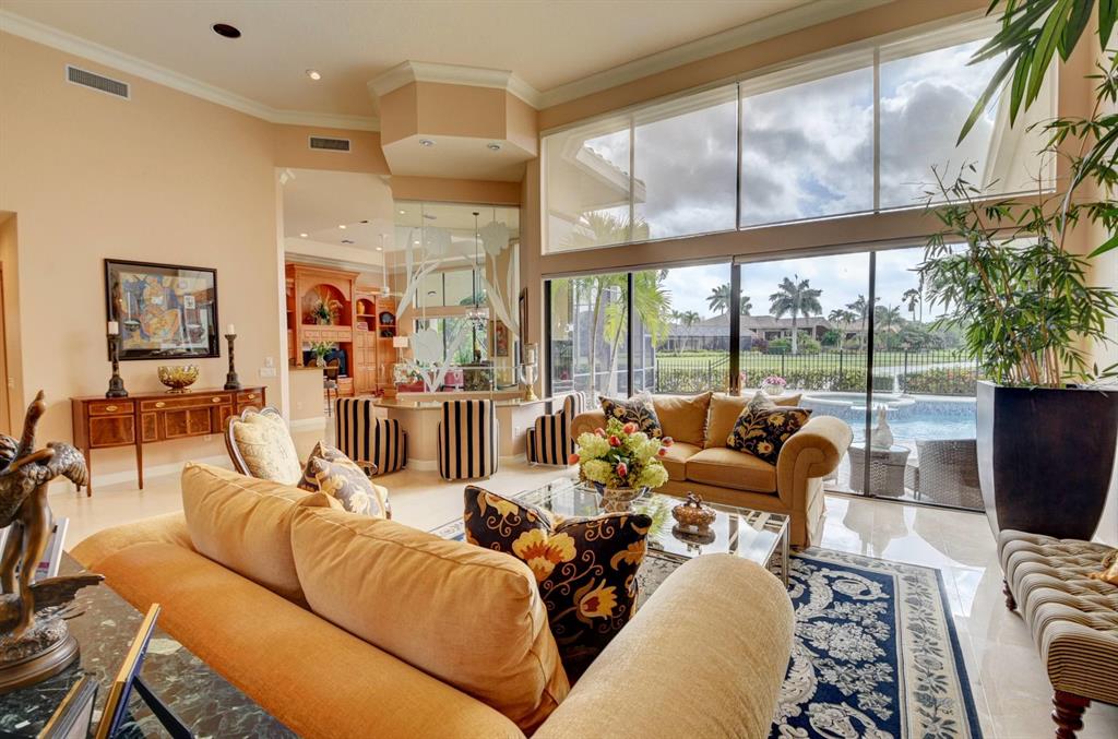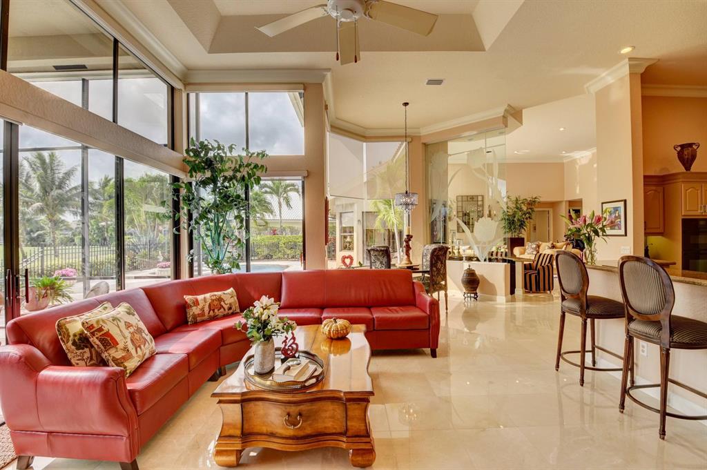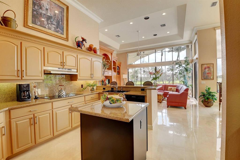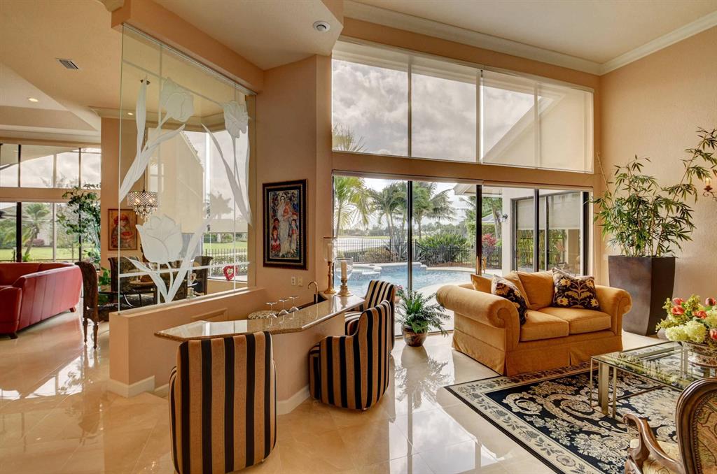 Truly unique paradise in Stonebridge Country Club. Must purchase golf level membership. Upon entering the home, you have perfect, unobstructed views to the beautiful lake, large pool, and golf course beyond (6th hole). This home makes an immediate impact with soaring ceilings, a single-level main living area (no step hazards!), oversized rooms, beautiful and functional built-ins, carefully curated finishes, custom-built bar area (perfect for entertaining) and expansive windows. The spacious, open kitchen has mid-toned wood cabinets, granite counters and backsplash and upgraded Stainless Steel Sub Zero refrigerator, Jenn Air oven, large workstation with desk, a dedicated dining area, and a snack bar...all overlooking the large, bright family room, lanai, pool, and lake. (MOR