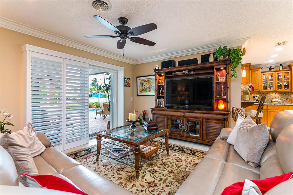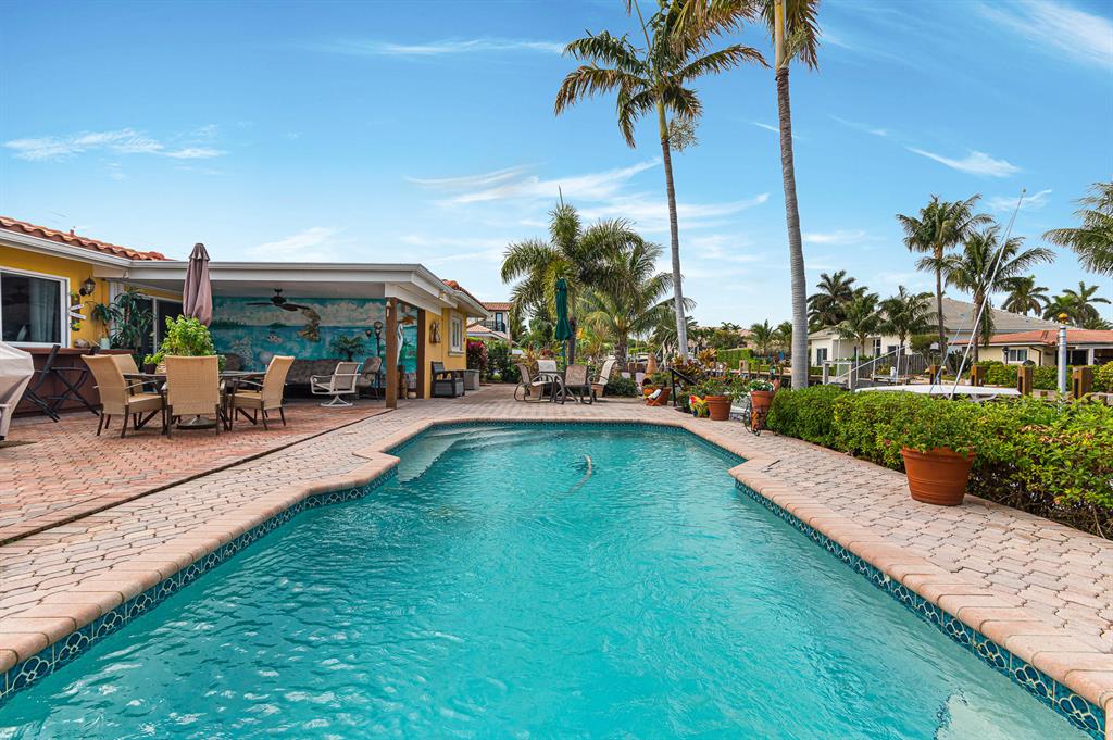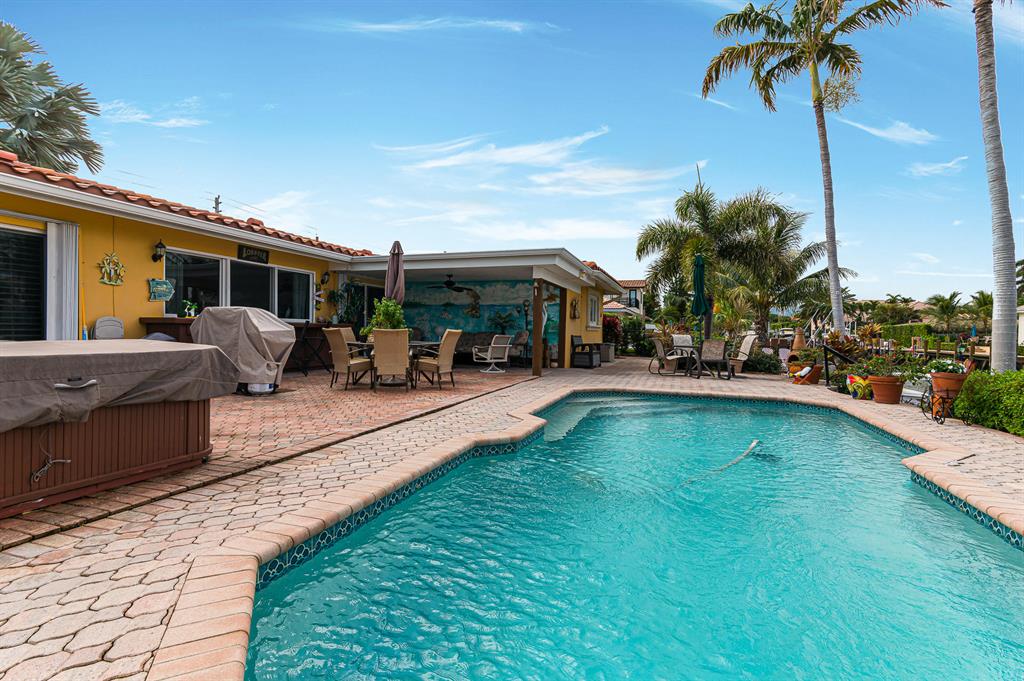 Boaters Paradise! Completely updated home with 80' of waterfront! Custom wood cabinetry with granite countertops and stainless steel appliances, large living & dining room, master suite with separate shower & roman tub, huge walk in closet. Large guest suite with private full bath, nice size 3rd bedroom currently set up as an office, interior laundry room. Newer roof & air conditioner, Impact sliding glass doors & kitchen windows, full hurricane protection with according and panel shutters. Bright & Open back yard area for entertaining with covered patio, heated pool & spa. Brick Paver Driveway. The home sits a few lots from the intracoastal waterway on a wide canal with a turn basin for large yachts. This Is A Must See!!