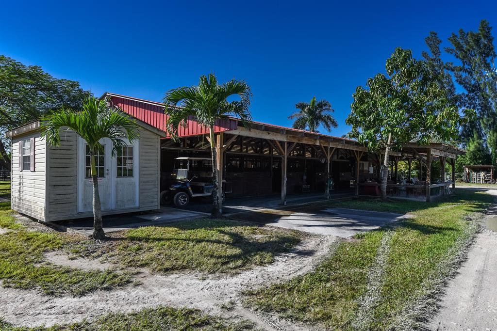 Unique income producing opportunity. No better farm for horses and training with 2 barns and a total of 26 stalls plus a 300' X 200' sand ring as well as a grass ring. Land includes 8 oversized paddocks. 2 grooms quarters, well water, and sprinkle system installed. Mowers and equipment can be included. Easy to trail horses to WEF and other horse shows.This expansive property could easily accommodate a home. If horses aren't in the picture... subdivide this almost five acre lot and build several homes. This area is conveniently located near schools, restaurants, malls, airports and entertainment. POSSIBLE OWNER FINANCING to right buyer. Don't miss this fabulous opportunity!
