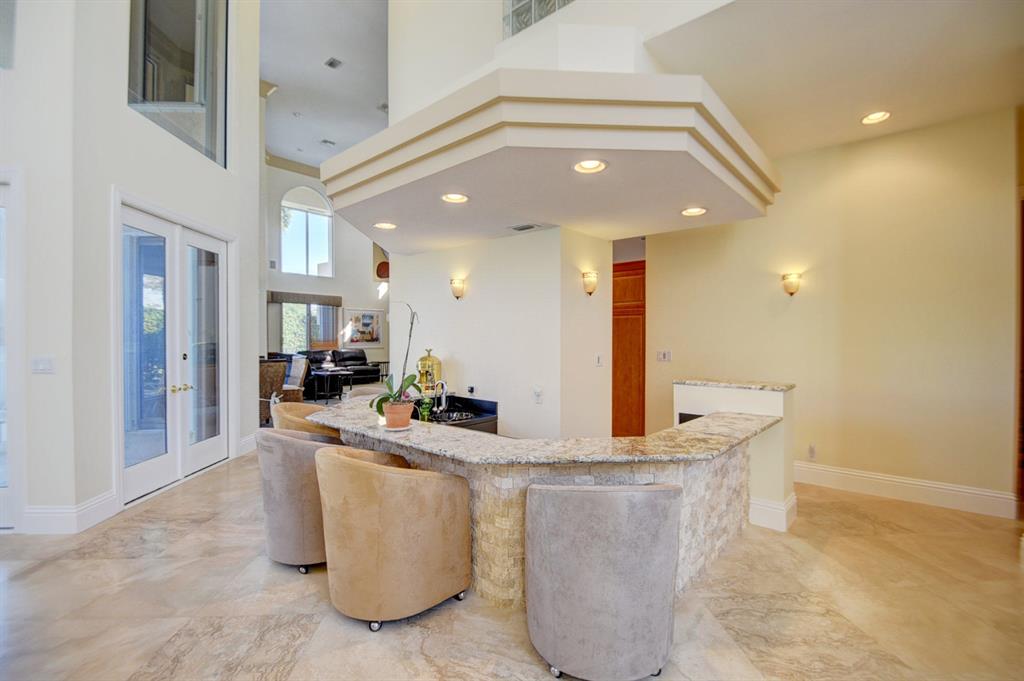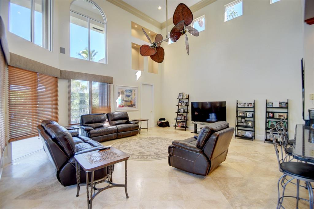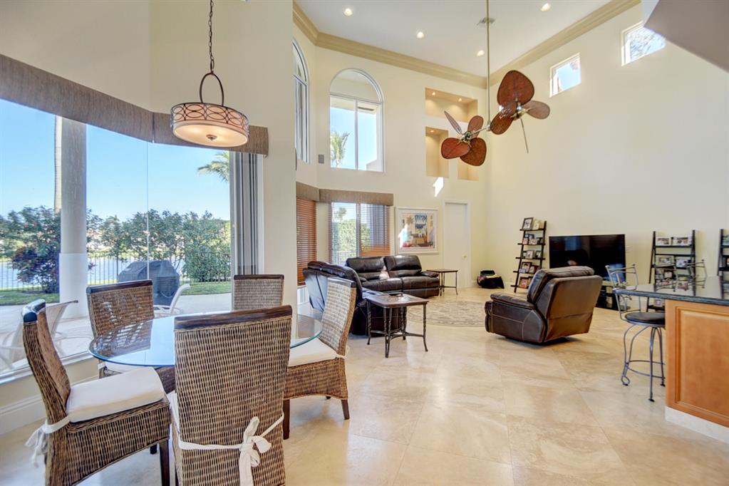 This 6 bedrooms two story residence has exceptional water and golf course vistas. A main entry foyer opens to a two story living room with dramatic floor to ceiling glass, full dining area and entertainment bar, all overlooking the pool, patio and spa. The spacious first floor master suite and bath area, along with a library/office occupy one wing. An open kitchen with center island, serves the dinette and two story family room with overlooks the pool patio and magnificent water views. There are two additional first first floor bedrooms that share a full bath. An upstairs entertainment loft overlooks the living and family rooms below, and has three additional bedrooms suites. The home has exceptional storage and a three car garage. A full membership to St Andrews CC is required.