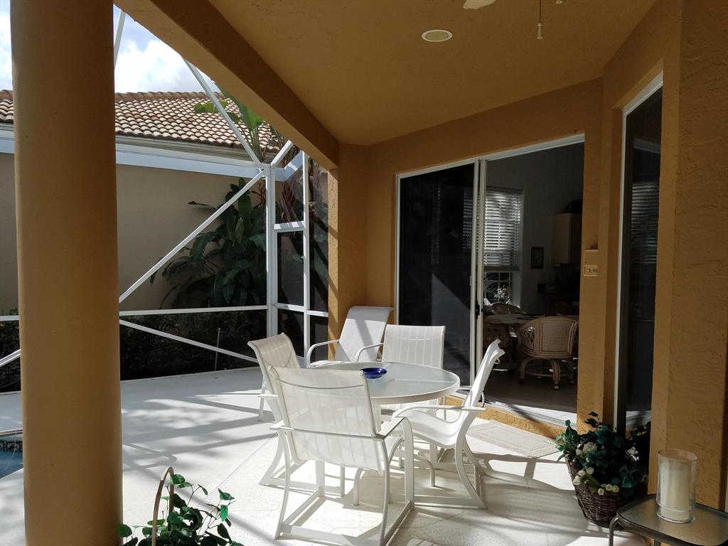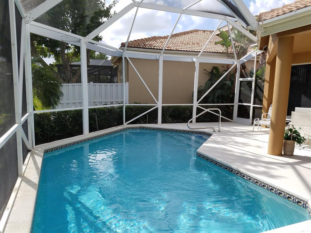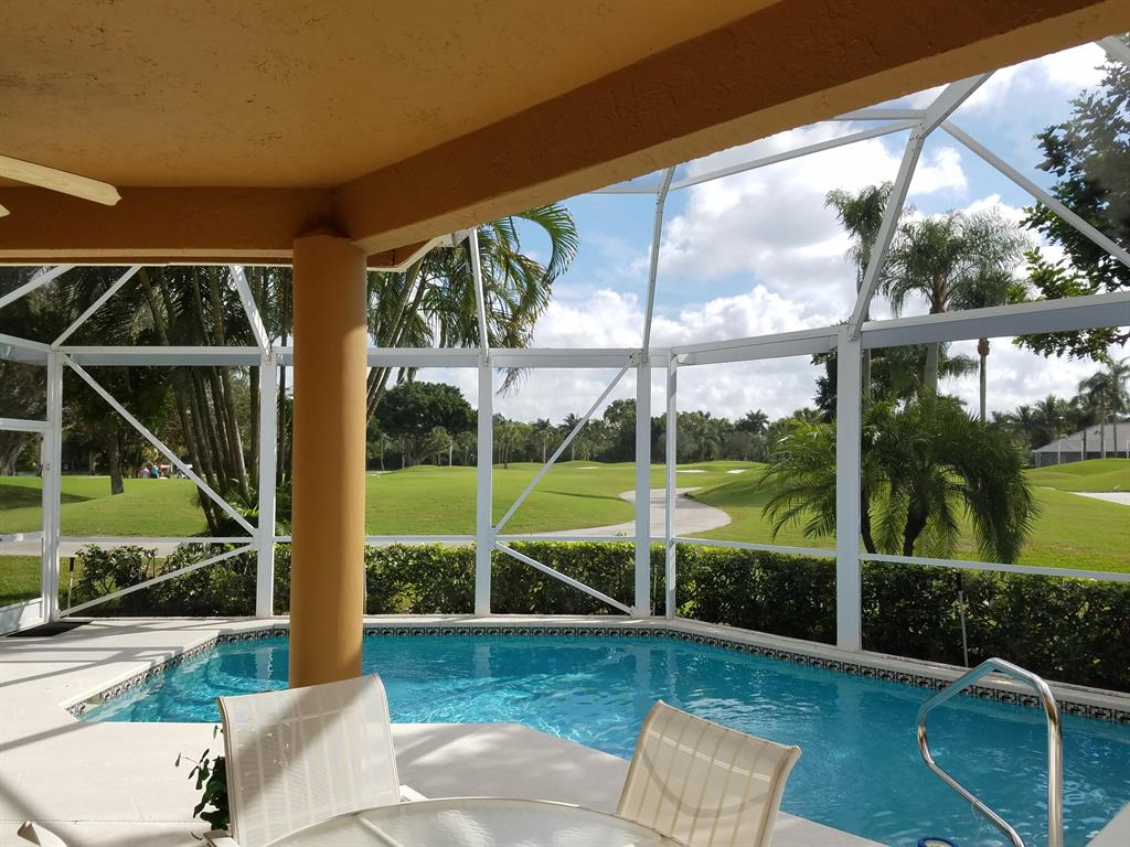 Overlooking the 10th green and 11th tee of the Heritage Course this pool home features an inground heated pool, less than 2 yr old roof, full hurricane shutters and AC 1yr old, the garage door was replaced with one that meets current hurricane codes. Wood laminate floors thru out with the main living areas and tile in the kitchen and bathrooms. Enjoy the screened in Lanai overlooking the pool and expansive golf course views with an eastern exposure. Conveniently located within a short walk to the Club House, the east gate and shopping. Mandatory Club membership, base membership is a Social Membershio. See documents for floor plan and Club information