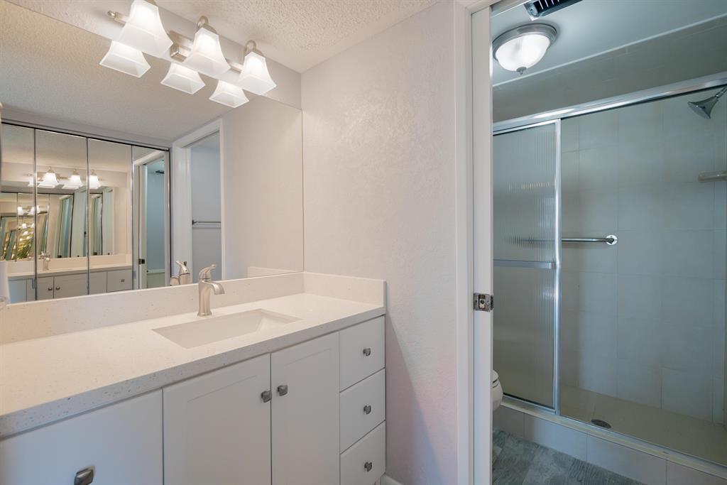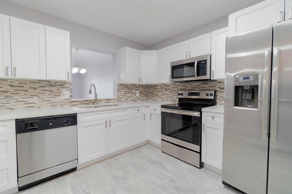 Completely renovated, 2 bedroom, 2 bath, CORNER unit, , 1 car garage villa in the much sought out adult community of Town Villas in west Boca Raton. Updated kitchen cabinets modern backsplash with new stainless steel appliances, granite counters, new wood like flooring throughout the entire unit, Updated bathroom granite vanities with updated light fixtures. The unit also has a connection for a washer and dryer, clean community with a great clubhouse with exercise room, library and much more. A must see.