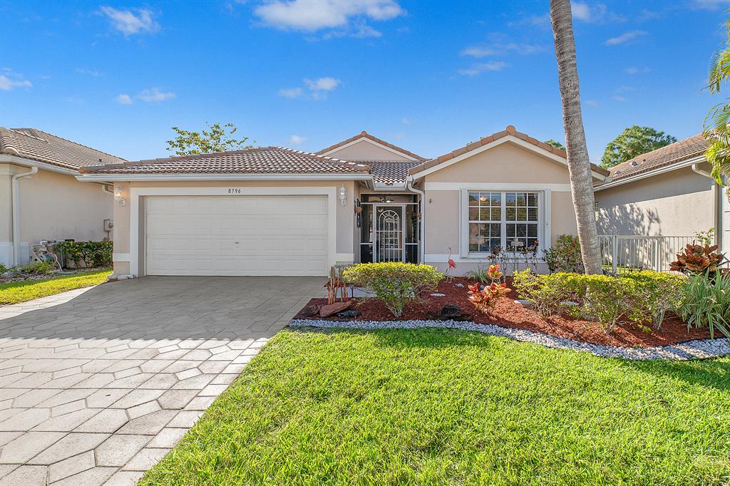CHARMING, BRIGHT 3/2/2 HOME WITH SALTED POOL 27 X 11, ON THE NATURAL PRESERVE, LARGE SCREENED PATIO, KITCHEN WITH BREAKFAST AREA LOOKING AT THE POOL & PRESERVE STAINLESS STEEL APPLIANCES, GRANITE COUNTER TOP,LIVING ROOM WITH VIEW POOL & PRESERVE, LARGE MASTER BEDROOM SUITE WITH VIEW ON THE POOL & PRESERVE, WALKING CLOSET, MASTER BATHROOM. 2 GUEST BEDROOMS WITH A FULL BATHROOM. ACCORDIONS SHUTTERS. LOW HOA INCLUDED : 24/H GATED COMMUNITY, CABLE, INTERNET, ALARM, LANDSCAPING, 10,000 SQ FT CLUB HOUSE, FITNESS, POOL, BABY POOL, JACUZZI, SAUNA, BALLROOM, 2 POOL TABLES, CARDS ROOM, 6 TENNIS COURTS, BOCCE BALL, BASKETBALL. CLOSE TO EVERYTHING, TURNPIKE, I.95, SHOPPING, RESTAURANTS, THEATER, POLO CLUB, GOLF COURSES, 12 MINUTES AIRPORT, DOWNTOWN, BEACHES. SELLERS MOVING OUT OF STATE
