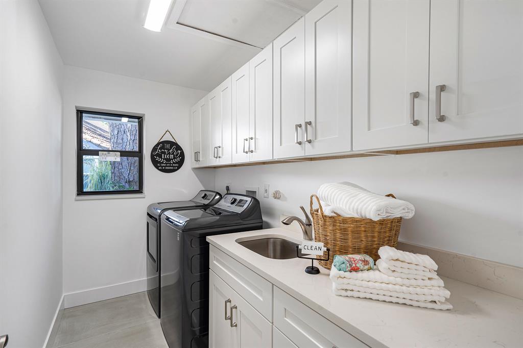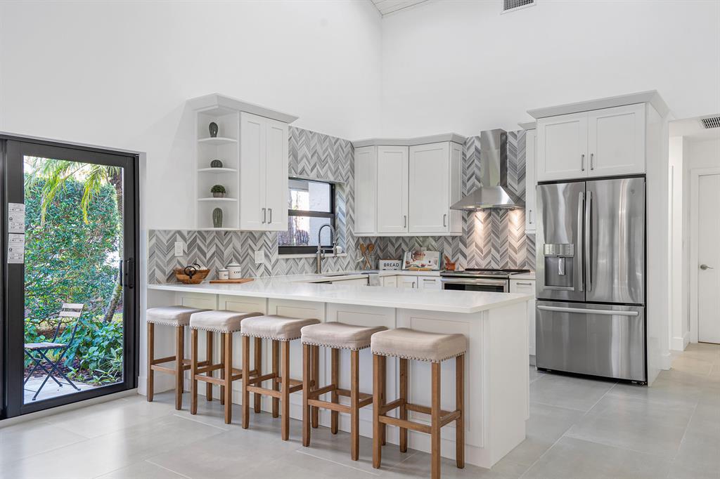 Located in the desirable Millpond community, this single level pool home is situated on well over a quarter of an acre (.33 acres). The wide backyard and pool enjoy sun throughout the day with Southwest exposure. This home has been completely remodeled including all new 2019 bronze finish PGT Impact windows and doors, plus new impact garage door. Open concept kitchen with white shaker soft-close cabinetry, marble tile backsplash, quartz countertops with brushed nickel fixtures. Premium GE Profile stainless steel appliance package including two-zone wine cooler and black stainless steel washer and dryer. Two zone 2018 Trane A/C units. All new flooring throughout for a cohesive look with oversized matte finish porcelain tile. Highest and best due Feb 10th, no offers accepted before then.
