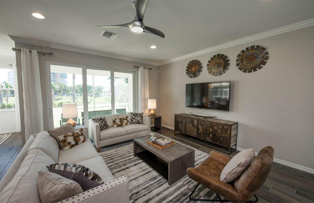 The Sienna at Parkview at Hillcrest maximizes its 2-story design with an open kitchen, naturally lit cafe area, spacious gathering room, and sizable loft. This single family home features impact glass throughout, Desert Silver kitchen countertops, Winstead Maple/Flagstone and Winstead Maple/White Paint kitchen cabinets, Lagoon bathroom countertops, screened-in covered lanai, den option, and more!