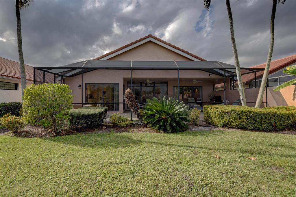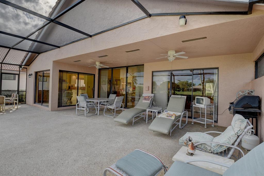 LOVELY PATIO HOME WITH A LAKE VIEW. ON THE THE CUL DE SAC OF A DESIRABLE STREET.NEWLY SCREENED, OVER-SIZED PATIO OVERLOOKING THE LAKE. OPEN FLOOR PLAN WITH SOARING CEILINGS. KITCHEN HAS BEEN REDONE WITH GRANITE TOPS AND NEWER APPLIANCES, CEILING FANS IN ALL ROOMS.A/C REPLACED IN 2015. SEPARATE LAUNDRY ROOM. DEN HAS POCKET DOORS SO CAN BE USED A 3RD BEDROOM. MANY CLOSETS. MAGNIFICENT VIEWS FROM MOST ROOMS.CLUB IS MANDATORY MEMBERSHIP. EQUITY BOND IS $30000, REFUNDABLE AT SALE.. INITIATION IS $35000 + TAX. YEARLY DUES ARE 16, 053 + TAX.