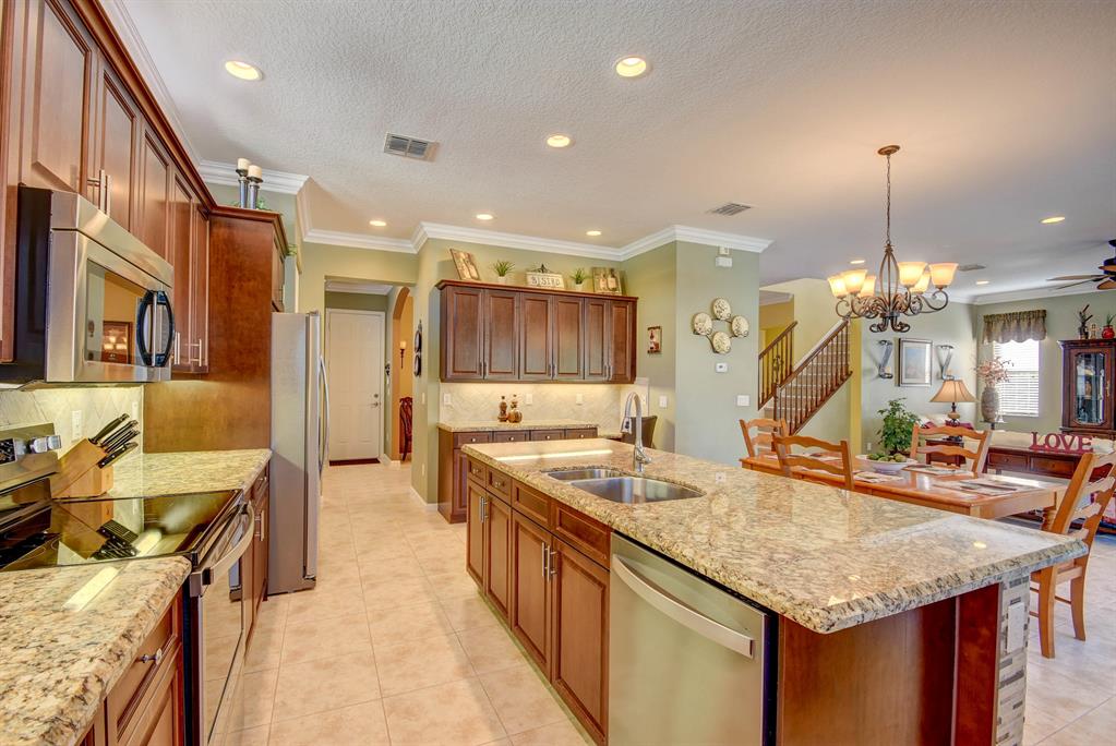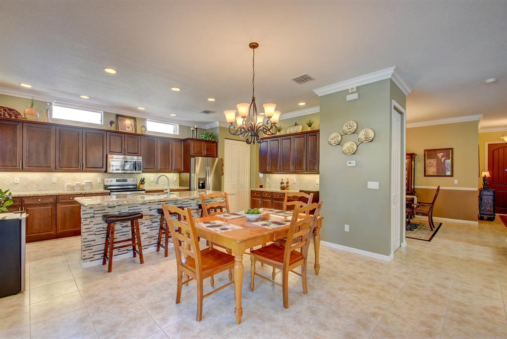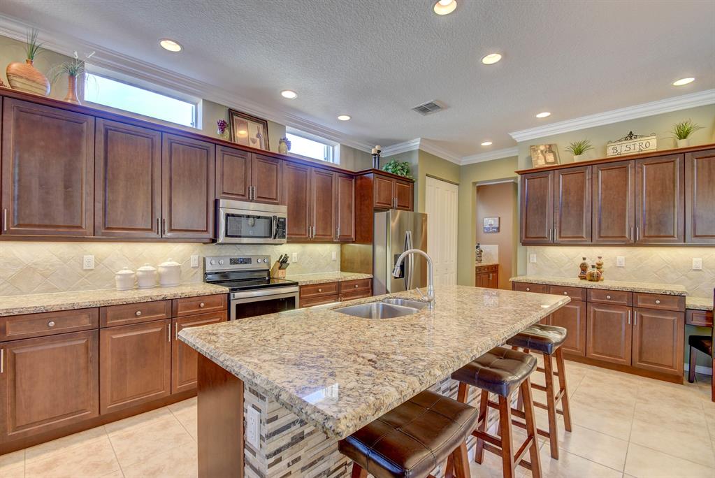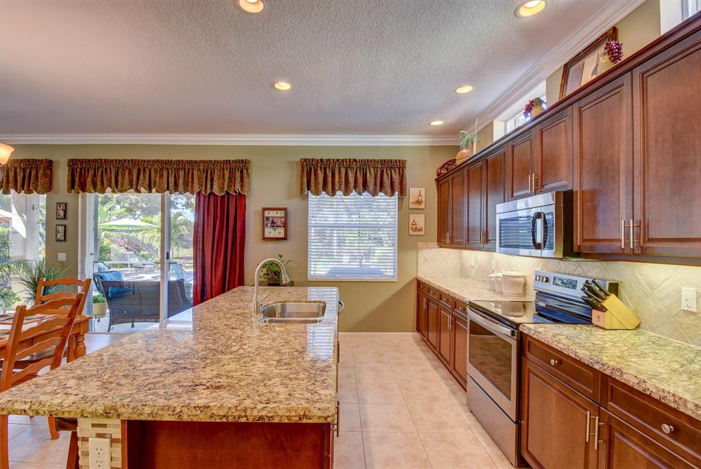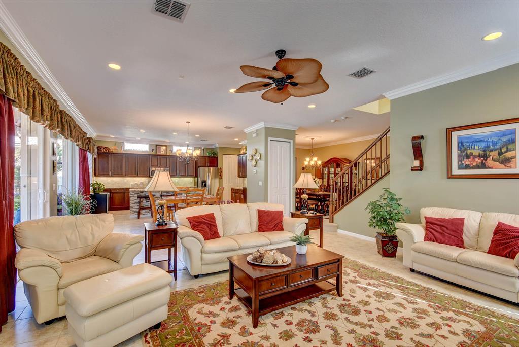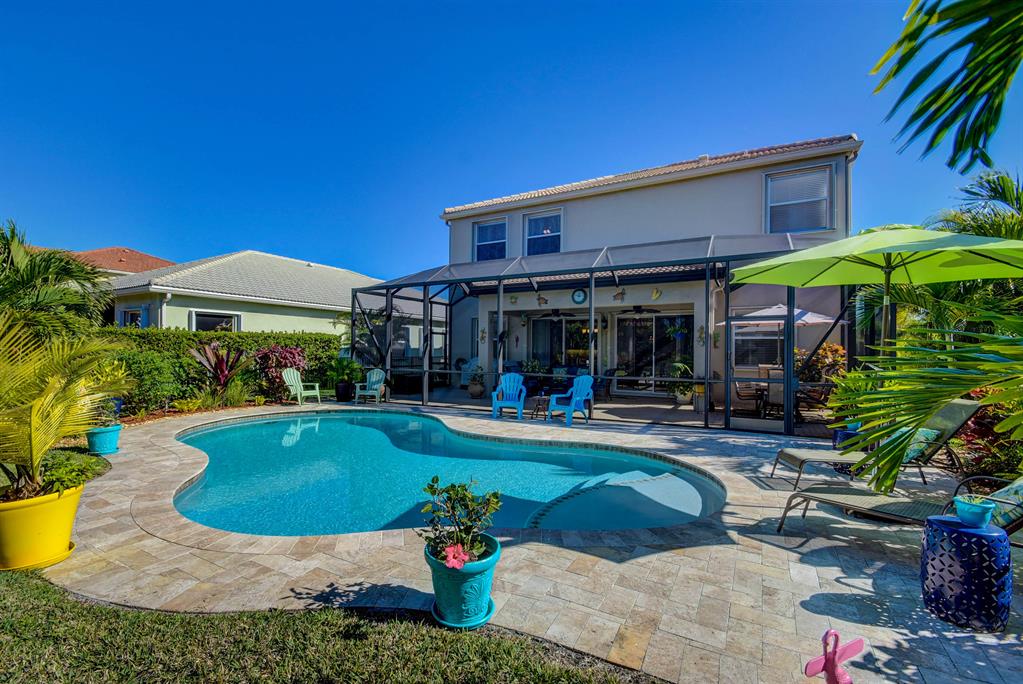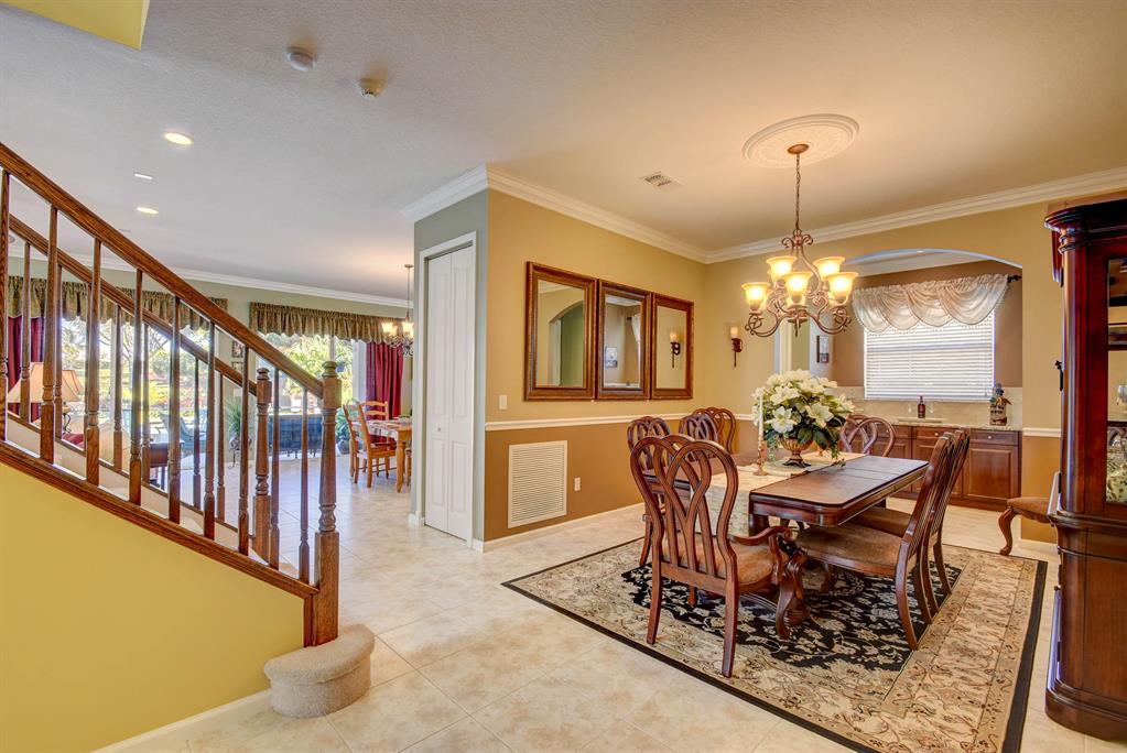 Amazing one-owner pool home in sought after Portosol. Terrific location and oversized lot, not backing to the main road, fenced and nicely landscaped. Inground heated, salt chlorinated pool with lots of deck space for entertaining. Four bedrooms, with a full guest bed/bath downstairs, plus an upstairs loft / living room that could be a fifth br. Awesome kitchen fit for a chef with 42'' wood cabinetry, stainless steel appliances, large island with bar seating, granite countertops with a walk through to the formal dining room with an additional butlers pantry with granite tops and lots of extra storage. Large family room and breakfast area that both open to the covered porch and screened lanai area. Fully fenced rear yard with great landscaping