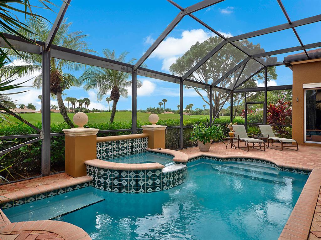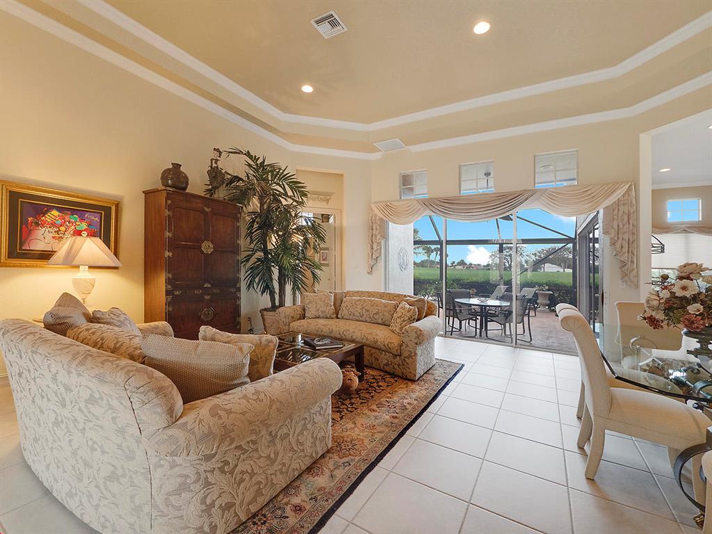 Enter this Lovely home Through Double Etched Glass Doors and note the Forever View! Located on the recently designed Legend Golf Course this home is on the 7th Fairway with Views across the 7th & 6th Fairway followed by a Lake and Million Dollar homes. Lovingly cared for this home had a new Roof in 2017. This home has a lot packed into for the square footage with 3 Bedrooms, 3 Bathrooms plus a Den. The Formal Living & Dining Rooms has a triple, stackable sliding glass door to the Pool/Patio. Around the corner is the Family Room which also has triple, stackable sliding glass doors to the Pool area along with a Breakfast Nook & Spacious Kitchen. The Kitchen includes a walk in Pantry, Granite Counters, 4 Burner Gas Cook, Wall Oven, Stainless Appliances, 3 Door Refrigerator & Built In Desk.