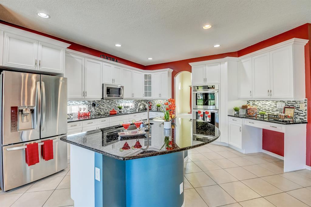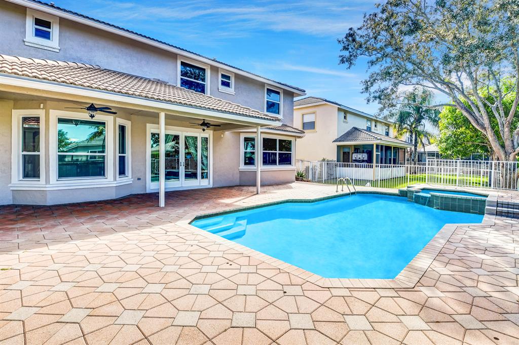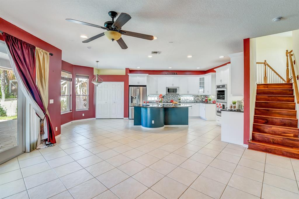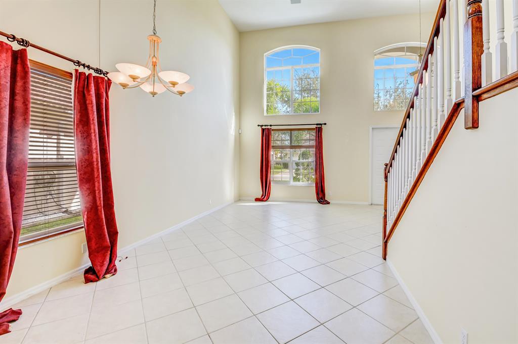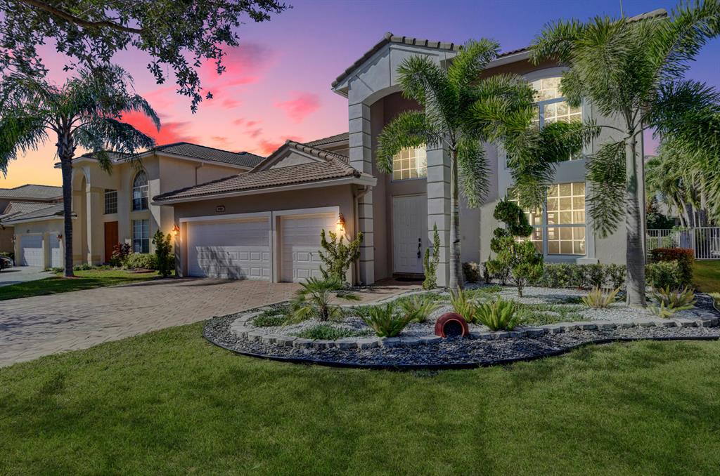 Dramatic entrance w/soaring ceilings & picturesque windows. Enjoy the sense of openness, volume & space. You can have it all with this fabulous 4 bedroom, plus a huge game room & loft, 3.5 bathrooms, 3 car garage, waterfront & pool home. Hurricane Impact windows/Hurricane Impact French doors/tiled throughout downstairs living area/double staircase to the 2nd floor with laminate /wood flooring on the stair case and entire 2nd level/this staircase can be accessed from different areas of this home. The kitchen has been completely renovated with granite countertops, huge granite center Island, glass tile backsplash, LG Stainless Appliances, Double wall oven, built-in desk, breakfast nook eat in area and opens to an enormous family room which all over looks the pool and waterfront. (more)