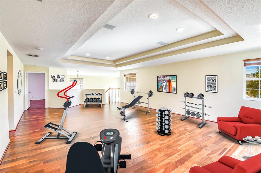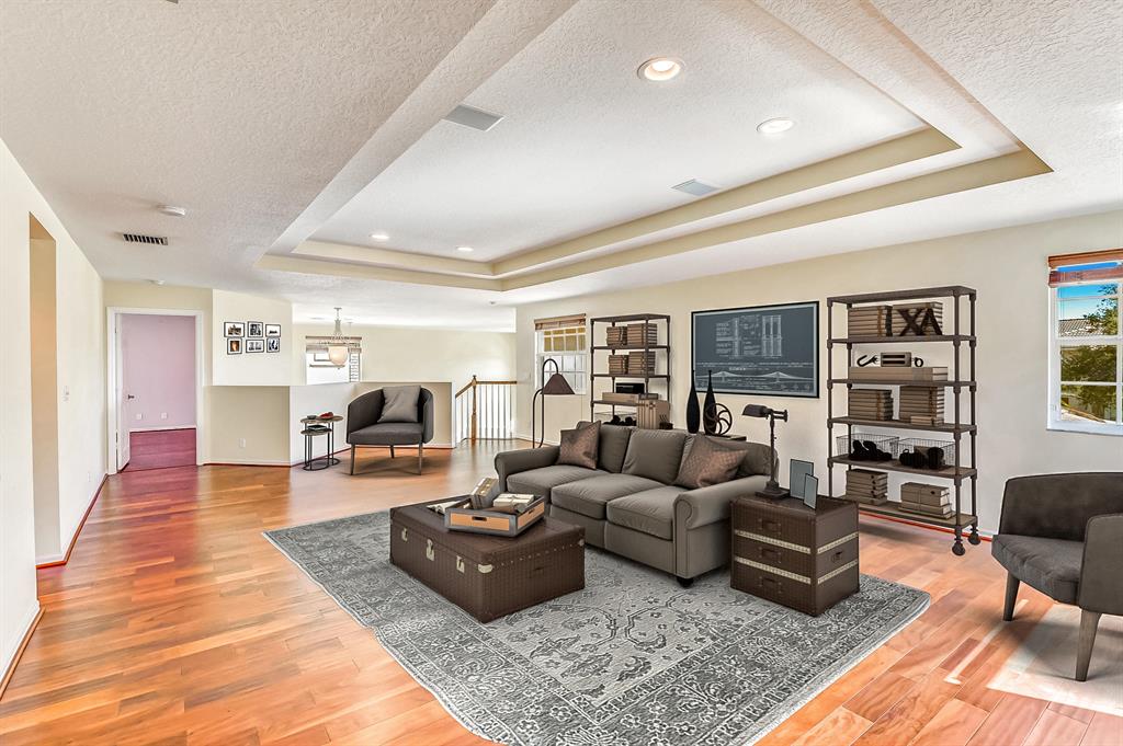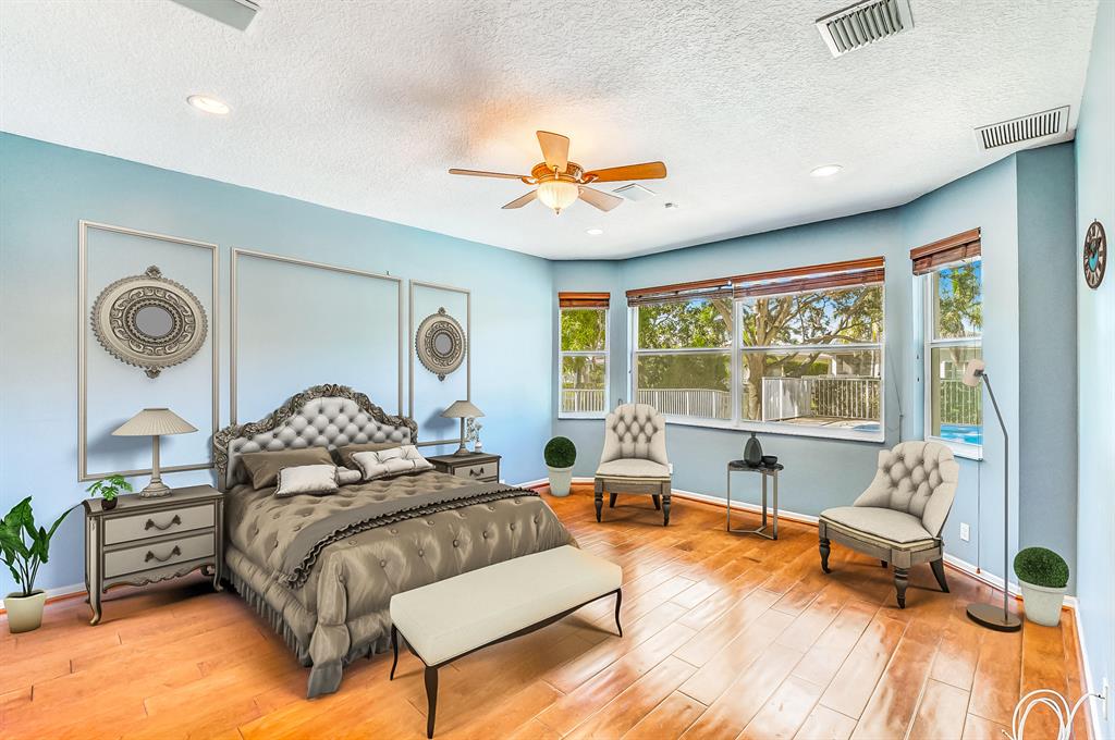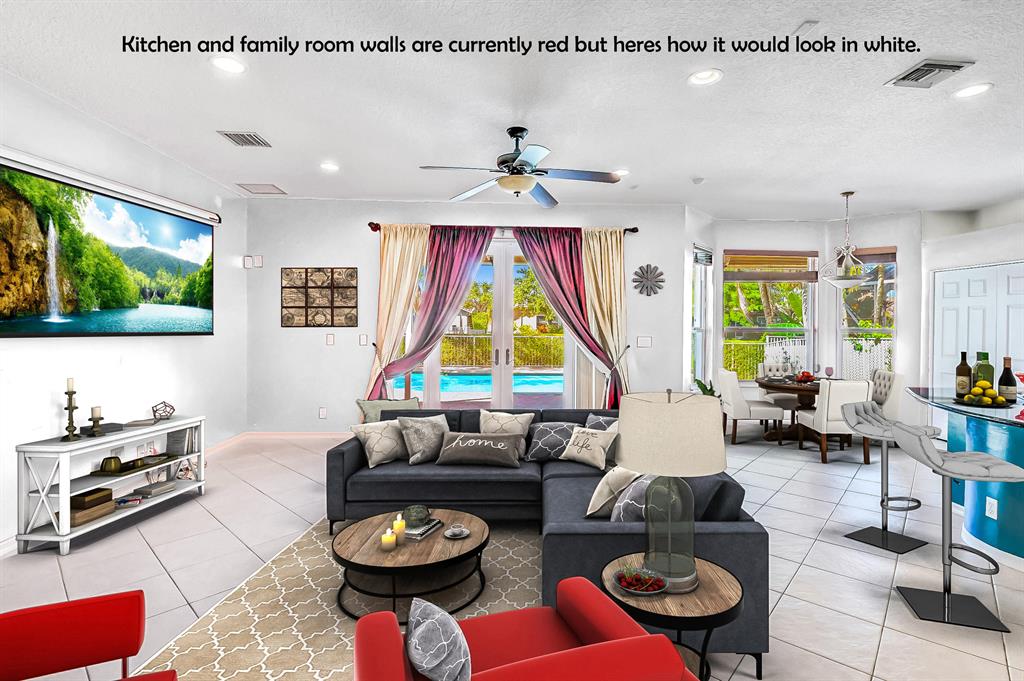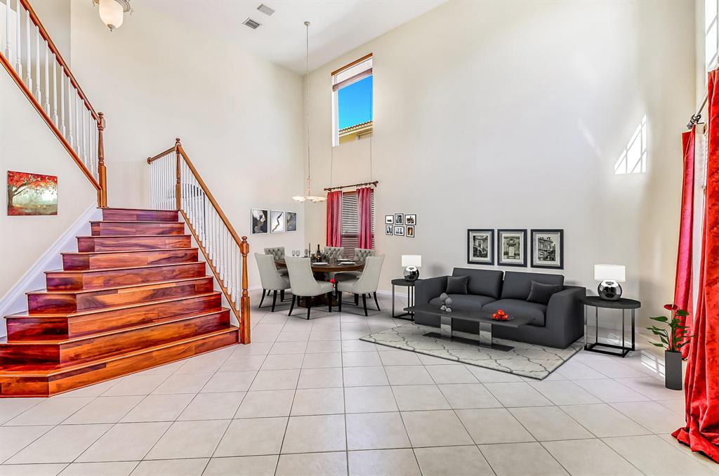 Dramatic entrance w/soaring ceilings & picturesque windows. Enjoy the sense of openness, volume & space. You can have it all with this fabulous 4 bedroom, plus a huge game room & loft, 3.5 bathrooms, 3 car garage, waterfront & pool home. Hurricane Impact windows/Hurricane Impact French doors/tiled throughout downstairs living area/double staircase to the 2nd floor with laminate /wood flooring on the stair case and entire 2nd level/this staircase can be accessed from different areas of this home. The kitchen has been completely renovated with granite countertops, huge granite center Island, glass tile backsplash, LG Stainless Appliances, Double wall oven, built-in desk, breakfast nook eat in area and opens to an enormous family room which all over looks the pool and waterfront. (more)