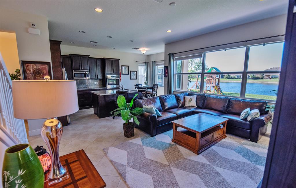 Look no further, the most affordable home in PortoSol has just hit the market! Built in 2015, this home feels brand new and shows like a model! With serene water views from almost every single room, this popular 'Sydney' floor plan was built with all the bells and whistles and offers the 4th bedroom and 3rd full bathroom downstairs for convenience. Fit for a chef, the custom, gourmet kitchen will impress with 42'' wood cabinets, built-in oven, beautiful granite, & stainless steel appliances. IMPACT WINDOWS throughout, formal dining room, upgraded baths, huge walk-in master closet, upstairs laundry, and upgraded landscape package add to the appeal and charm of this immaculate home. Take in the beauty of the sunsets over the lake from your extended paver patio while watching the kids