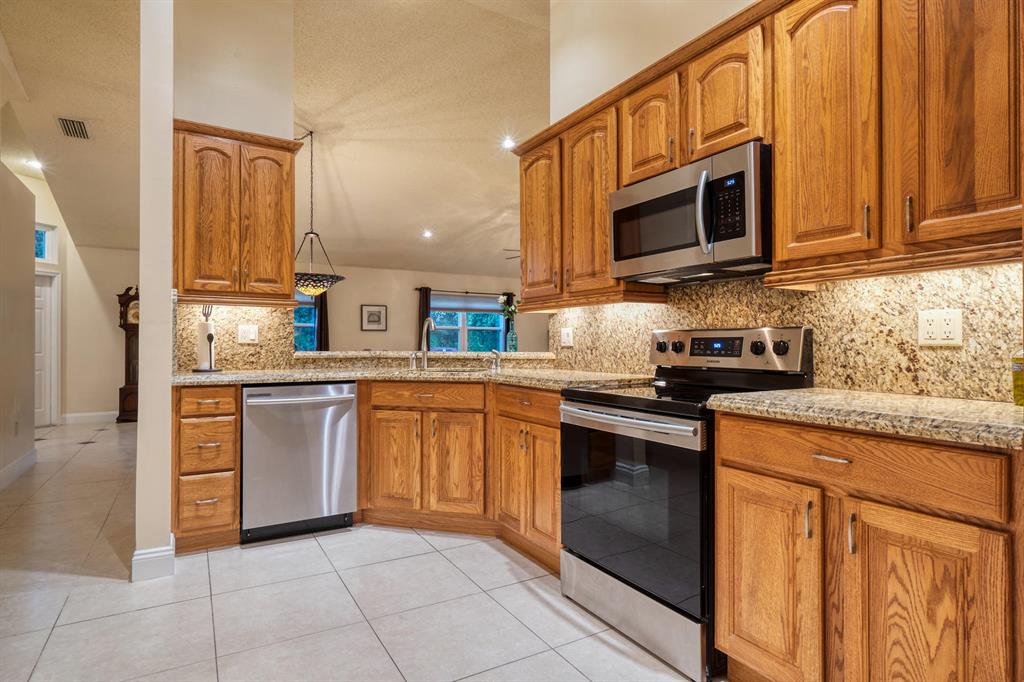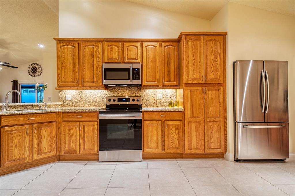 Spectacular 3/2 fully Renovated ~ Huge gourmet granite kitchen with lots of cabinets, New stainless Steel Appliances ~ Beautiful New bathrooms ~ ''Impact Windows'' installed 2015 ~ Ceramic Tile throughout entire home ~ Spacious Master bedroom with two closets (one is walk-in), 2 year old AC, New washer ~ Vaulted ceilings ~ Split bedrooms ~ Home was completely painted inside & out ~ Very spacious & bright home ~ Shows like a model Bring your fussiest buyer! EZ to show!