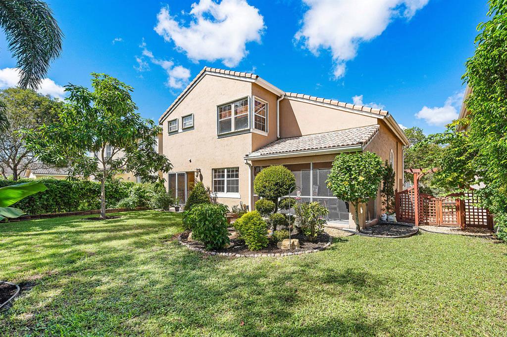 Look no further...Immaculate bright and spacious, very clean 2 story home in a quiet gated community. Move in ready.Lots of upgrades, including 18' ceilings in living room, 16''diagonal tiles in lower level, brand new carpet upstairs. Recess lighting in living room, custom lighting throughout the house. 6'' baseboards throughout, 8'' crown moldings, fluted door trimming, custom shelves, knockdown walls, rounded wall corners. The beautiful, updated kitchen with granite counter tops and stainless steel appliances is less than 5 years old. Master bathroom features double sinks and jacuzzi tub. Brand new oversized washing machine and newer drier. Patio tiled and screened in. Both front and backyards are tastefully landscaped. A very well kept property with a very low HOA fee.