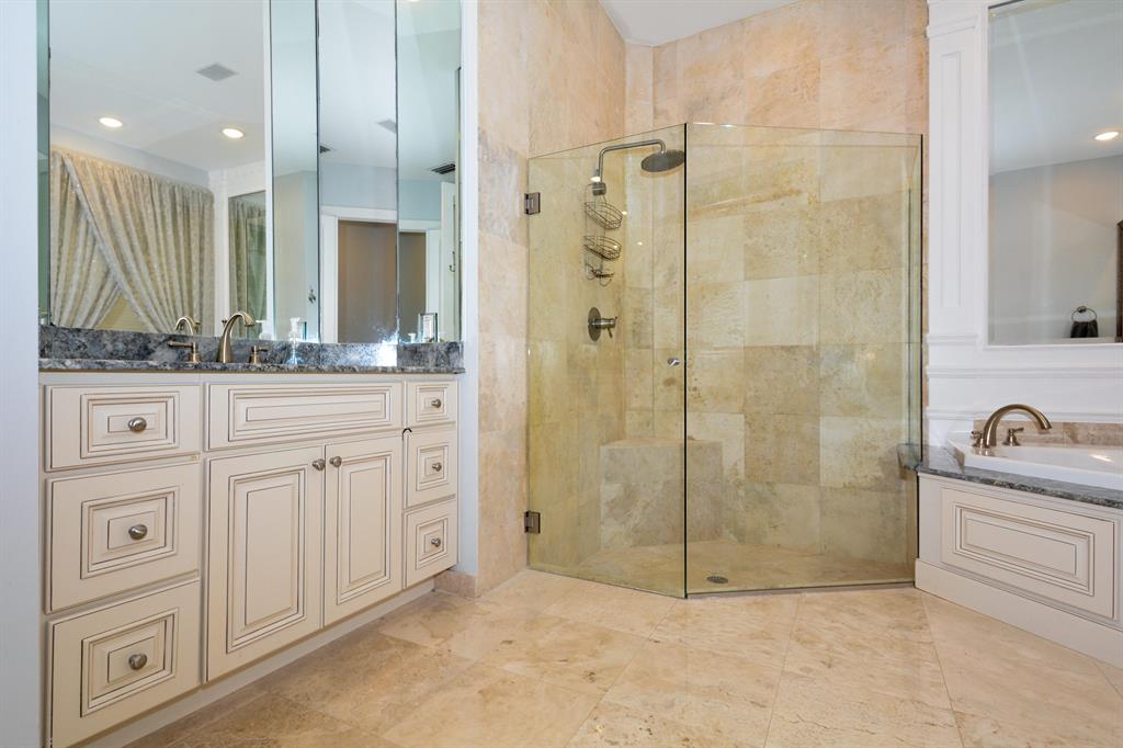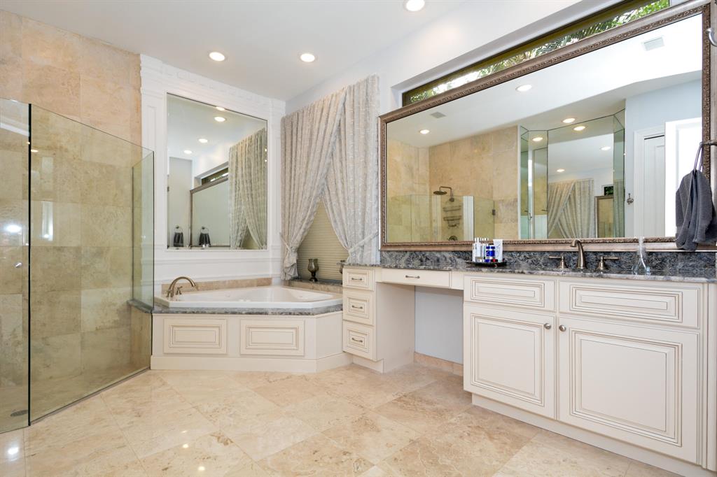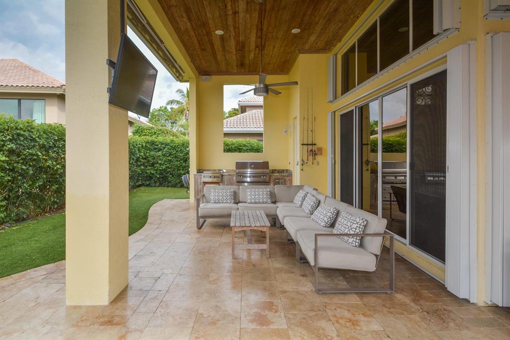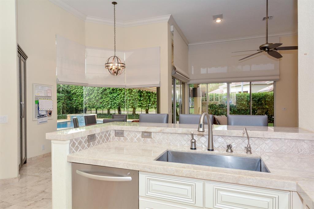 Beautiful renovated 1 story 4 bedroom lakefront home on lushly landscaped cul de sac lot. Over $300,000 in upgrades. Saturnia marble flooring in living areas, quality wood floors in master suite. Formal dining room, extensive moldings, dramatic fireplace in living room, large gourmet kitchen with center island & newer KitchenAid stainless steel appliances. Original roof regularly maintained in good leak-free condition. Sparkling heated saltwater Pebble Tec finished pool & spa, summer kitchen, covered patio with cypress ceiling & retractable awning overlooking serene lake. Travertine marble driveway and patio. Other upgrades include impact glass & accordion shutters, Nanny camera throughout, LED lighting & landscape lighting, Sonos speakers, gas run generator, & water filtration system.
