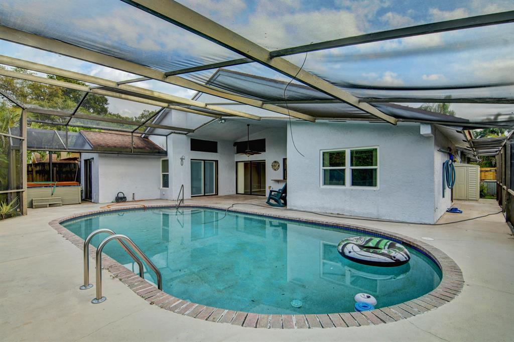 Cul-de-sac located Pool home with true 4 bedrooms, 2 baths located in Country Landing within Loggers Run, west Boca. Approx 2007 Roof, new HWH, brand new 2nd bath, impact windows. No carpet...all tile, laminate and bamboo wood floors. Vaulted ceilings in the living areas and master. 3 sets of sliders lead to screen enclosed pool and patio. Indoor Laundry. Just renovated 2nd bath with dual sinks, new plank flooring, tiled shower, new hardware. Wrap around screened patio for additional patio living. Master suite has closet systems, huge granite counter, dual sinks, tiled shower. Garage is 1.5 space with the other space converted into man cave area. Hurricane impact garage door. Fenced backyard, new pool pump. Community offers tennis, fishing dock, boat ramp, volleyball court, parks.