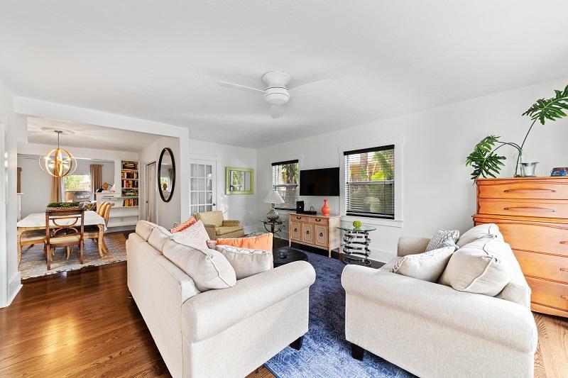 Key West style 1925 historic home in the Grandview Heights neighborhood. Lovingly restored and updated throughout. 3 bedrooms, and 2 baths. All newer windows, new electric system, gas appliances, including tank-less water heater. The house has been insulated with spray foam in the attic and crawl space, making for efficient and quiet living. All original hardwood floors, and a wood burning fireplace. The pool deck is lushly landscaped and private, with an electric heater. There is also a detached 2 car garage. The roof is less than 10 years old. Updated kitchen with granite counters and a gas range. The house is built on a CBS foundation with a basement area that provides access under the home. Currently the home is professionally managed as a vacation rental with future bookings/revenue