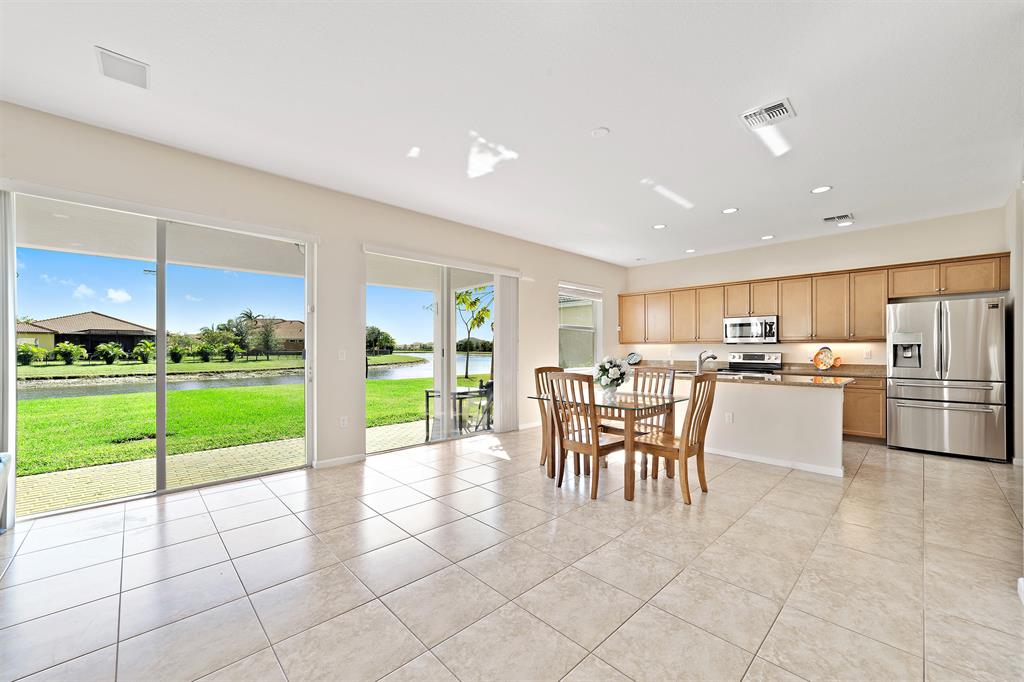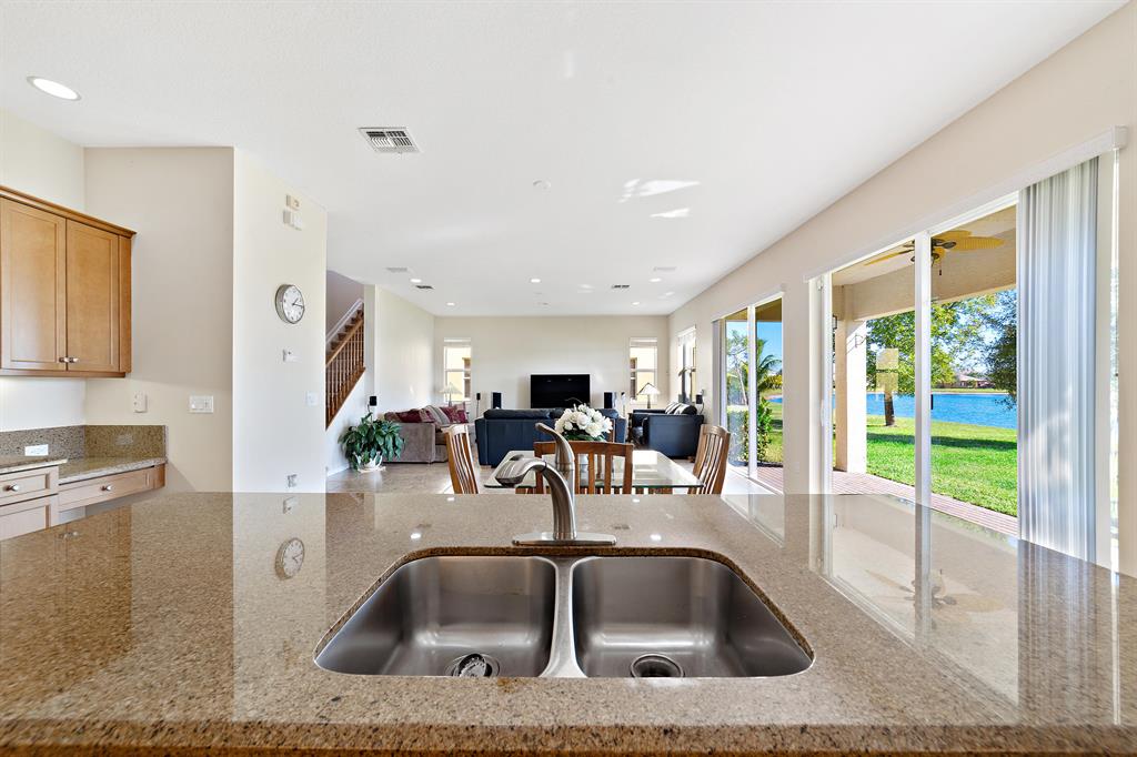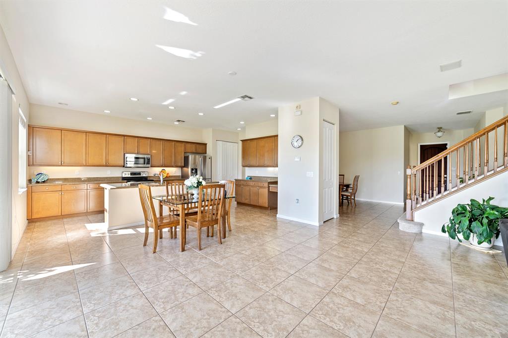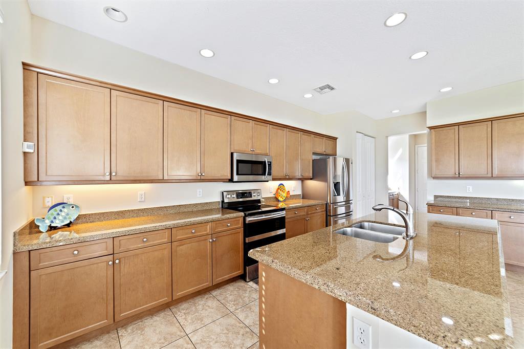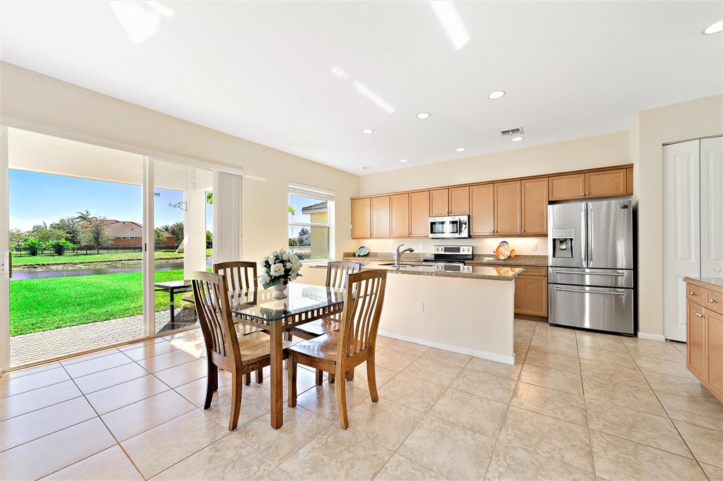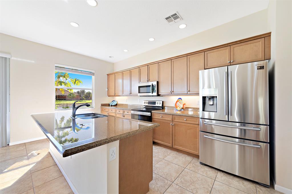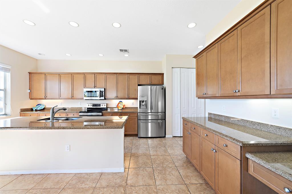 Phenomenal, meticulously maintained 4 bedroom plus den, 2.5 bathroom, 2-car garage home with spectacular lake view! Awash with natural light, the first floor boasts 10' ceiling with recessed lighting, and gorgeous neutral color 18'' tile. Open-layout kitchen is every cook's dream, and is equipped with brand new top-of-the-line stainless steel appliances, stunning granite counter tops and plenty of 42'' light wood cabinets finished with molding, large kitchen island, and a pantry closet. The kitchen conveniently opens to the family room and formal dining area, and is just steps away from the sliding doors leading to the fabulous outdoor area. Sit down and relax on the paved covered patio, and enjoy unobstructed lake view. The first floor offers half bathroom and a den that can easily be